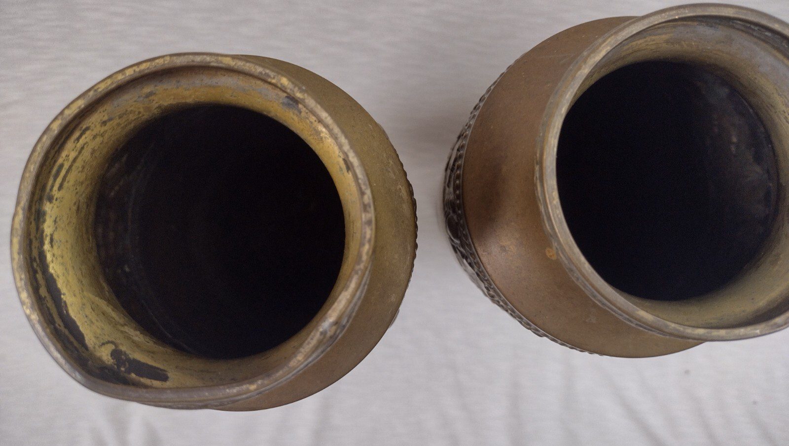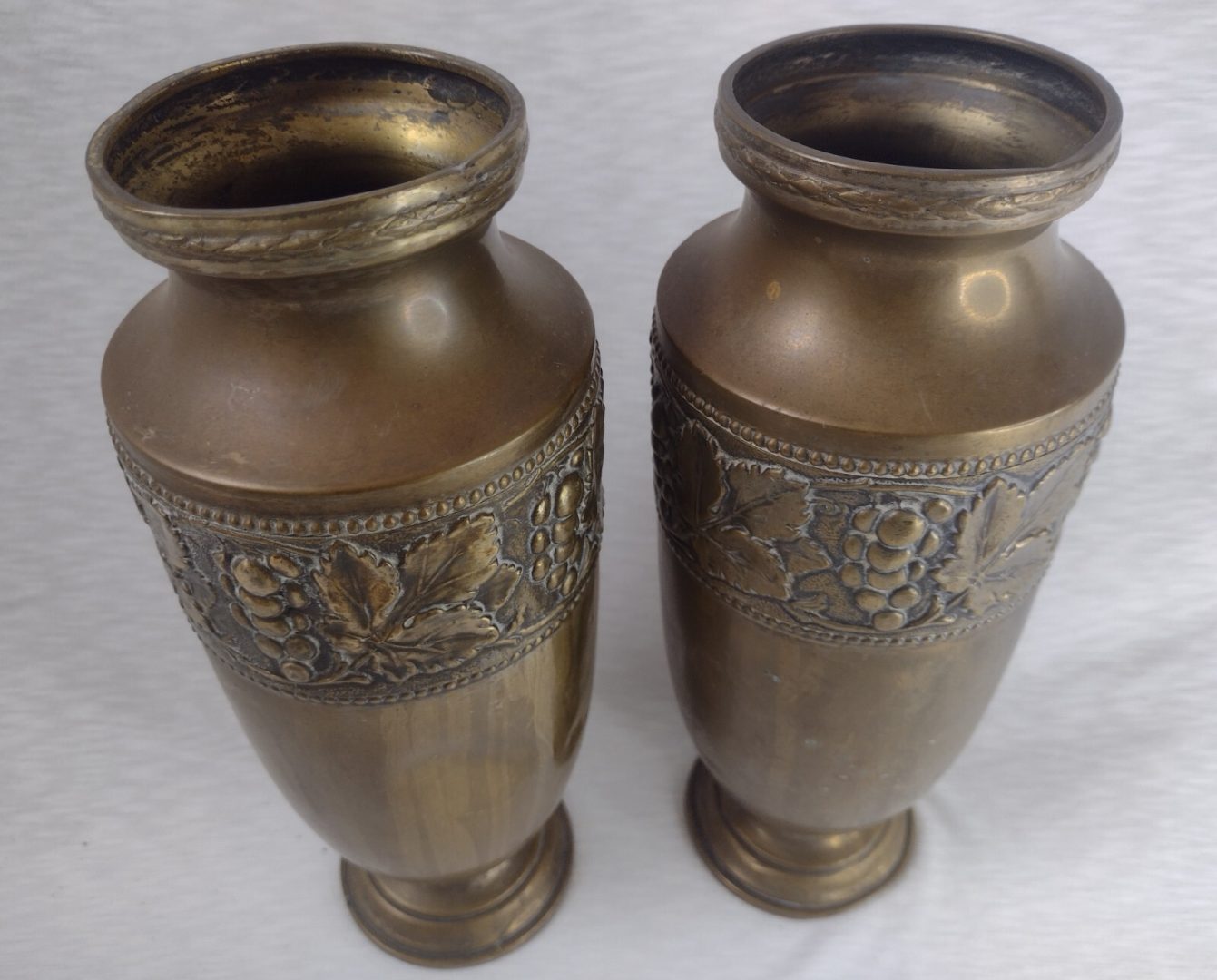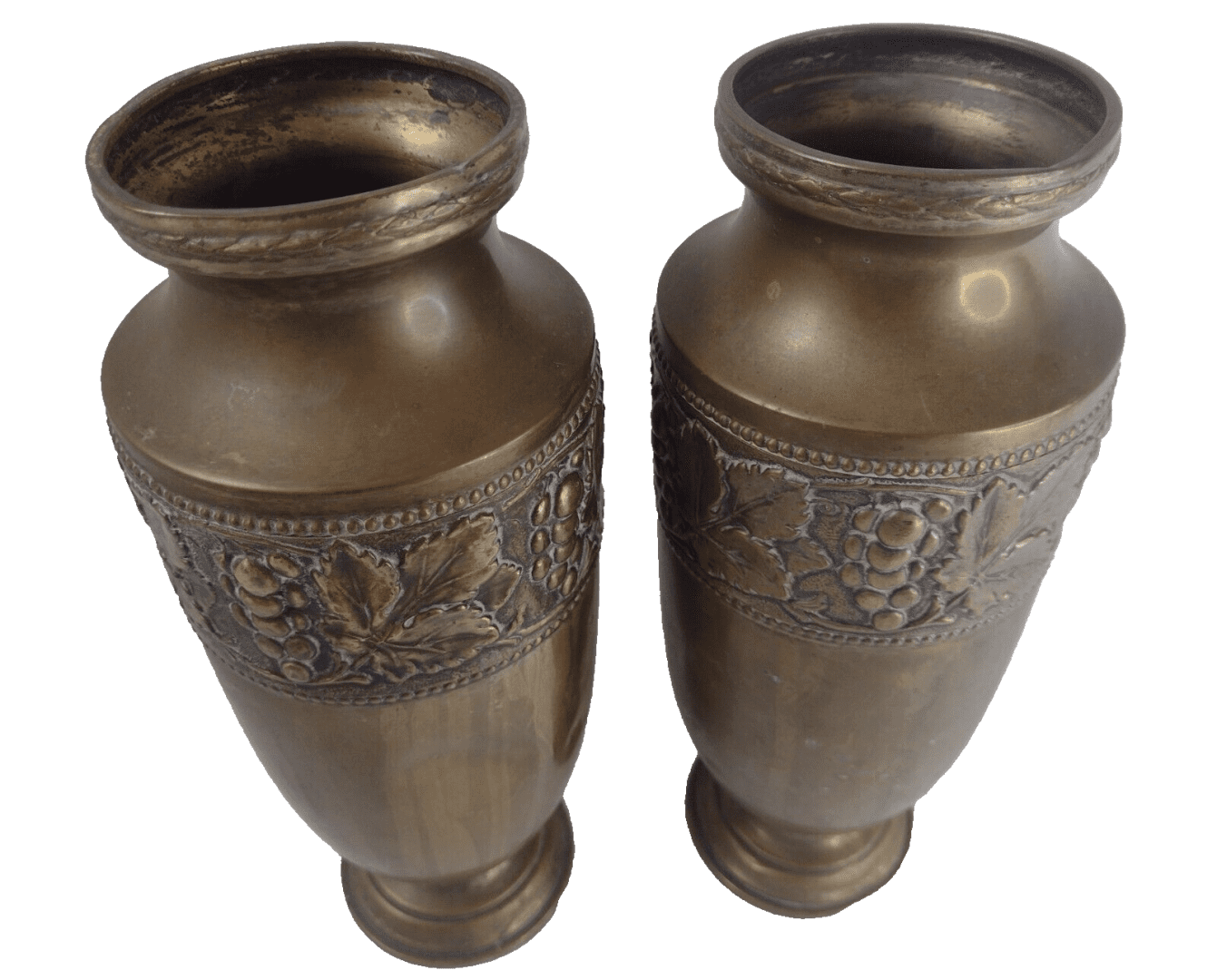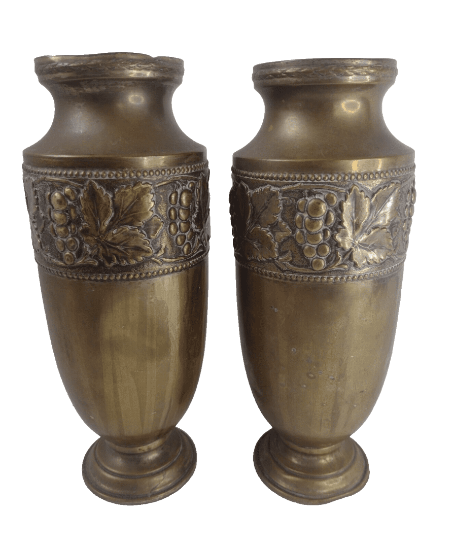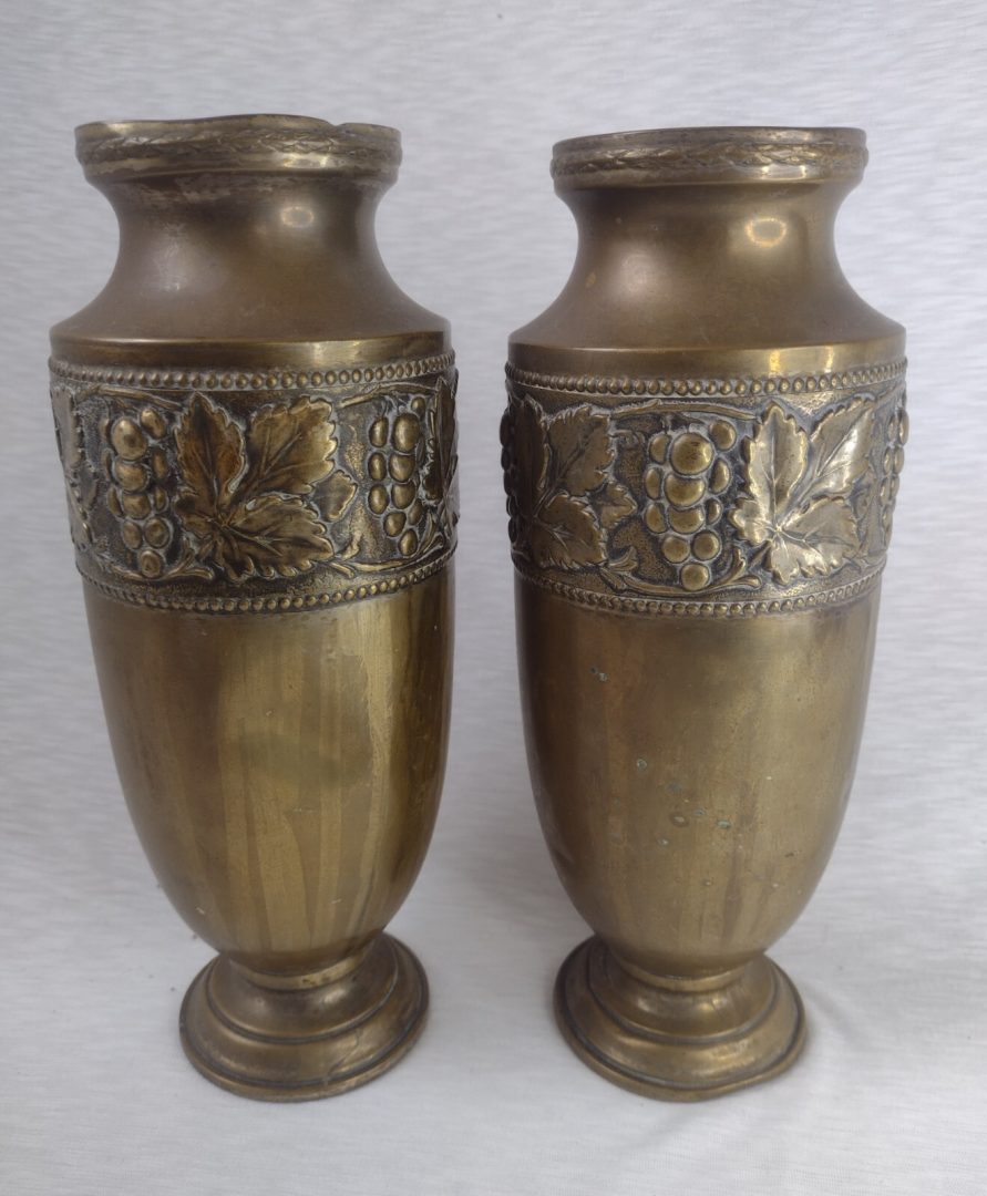 Original 19th C Vase Floral Art & Craft Solid Brass England Signed 24.5cm Antiqu