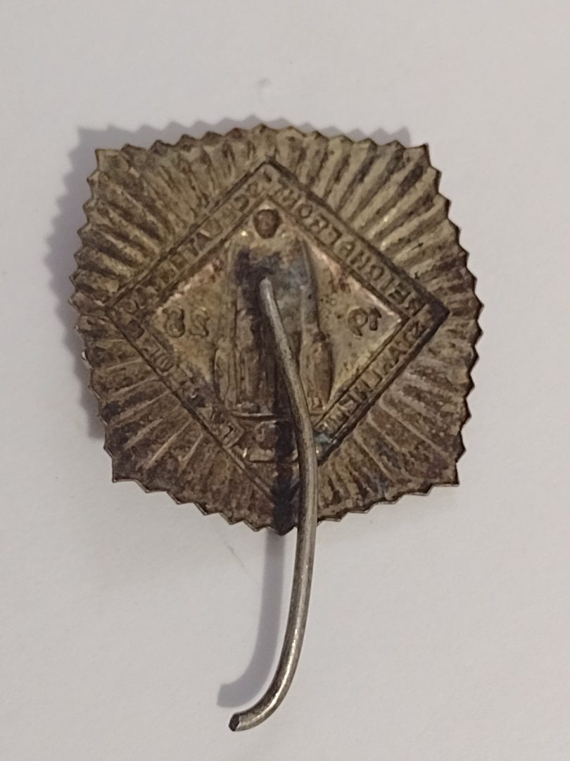 Size approximately 30 mm tall and 28 mm wide….. I believe this is an Original badge, in very good condition but showing genuine signs of age….UNMARKED SILVER….Please study pictures carefully to decide…