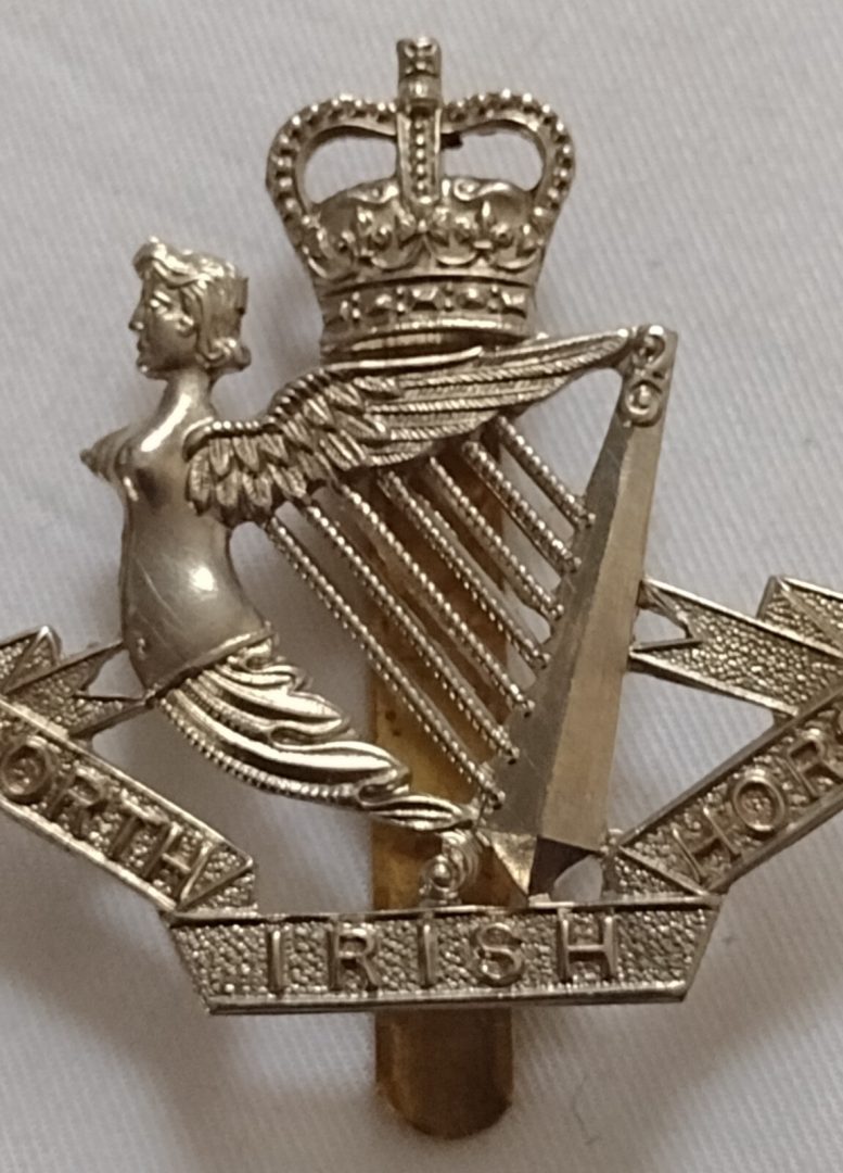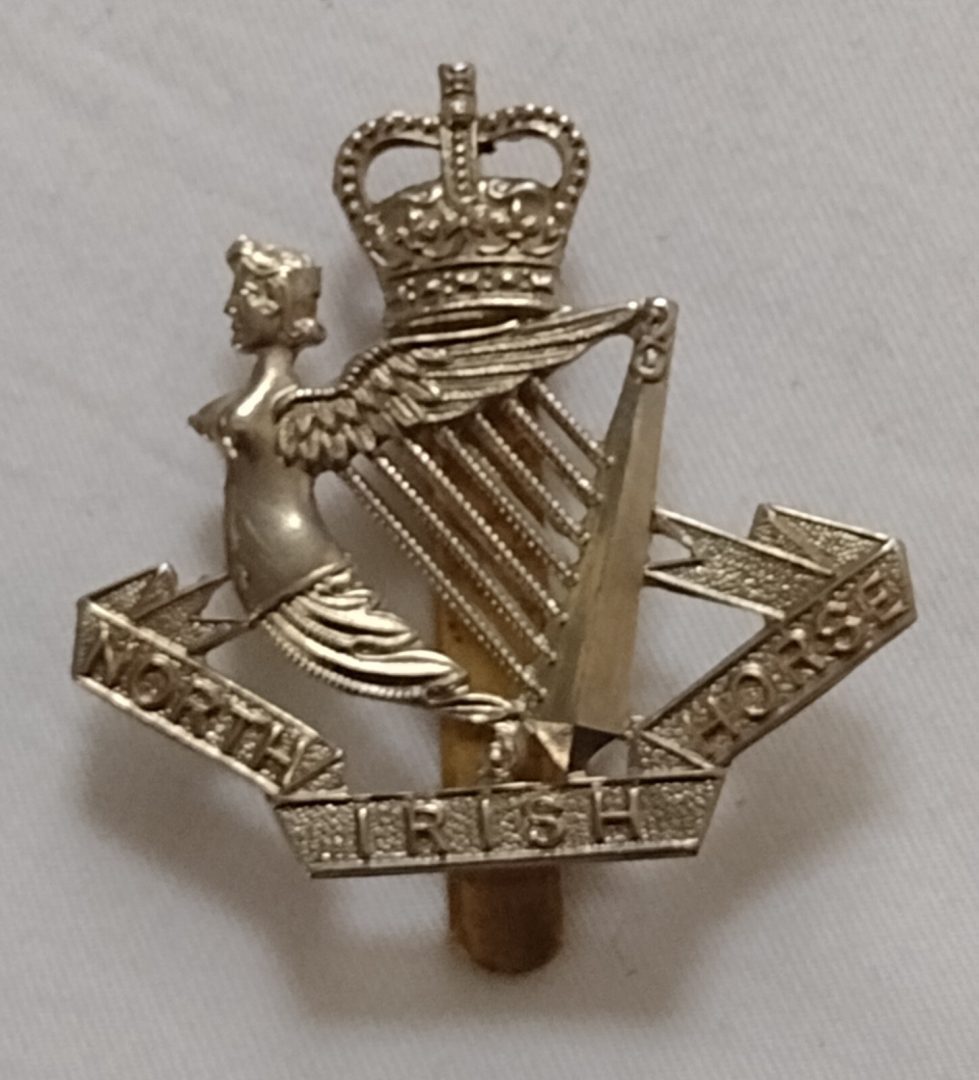 Original North Irish Horse Cap Badge QC EIIR 1954era White Metal Slider Vintage