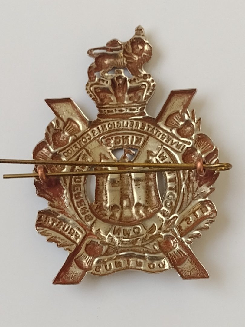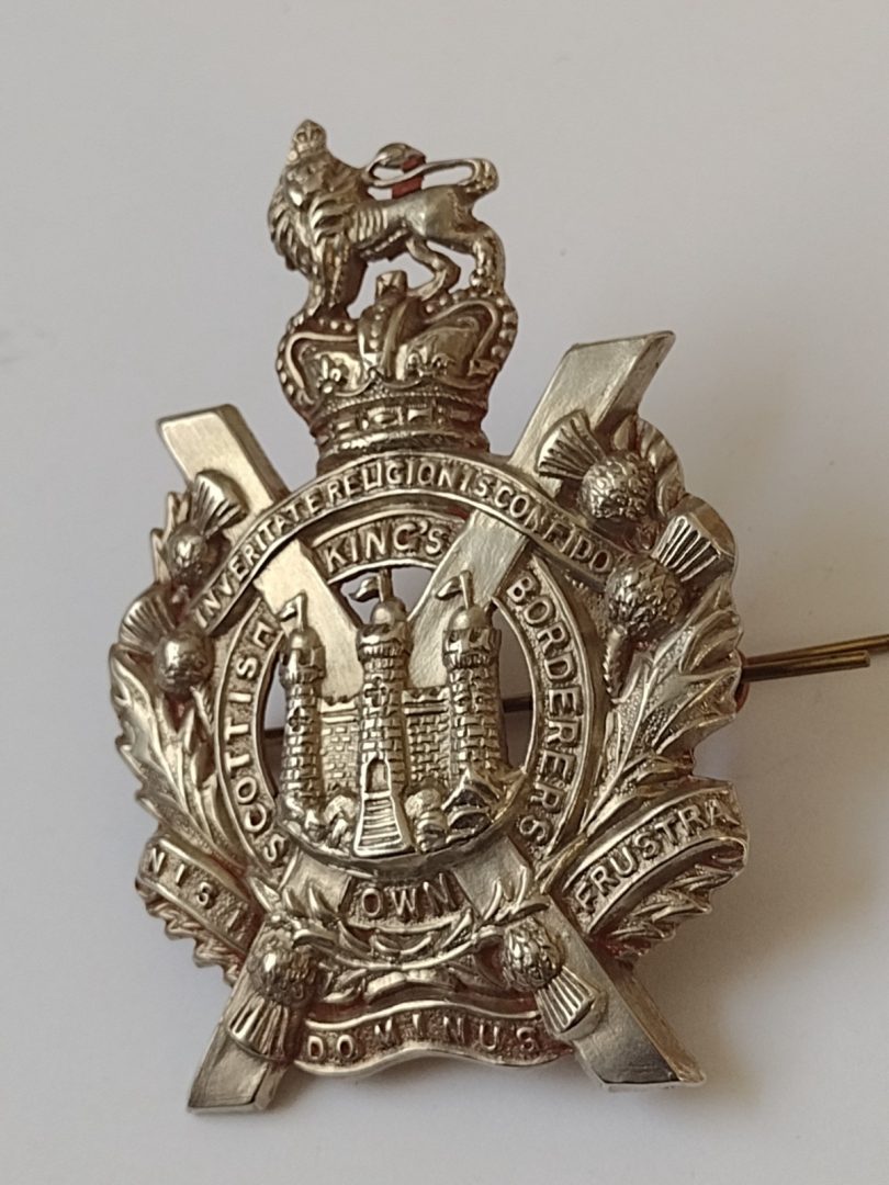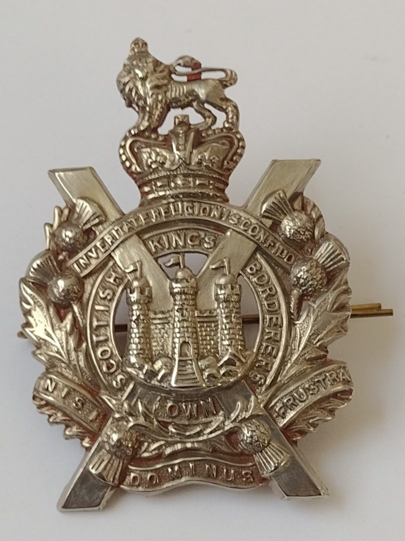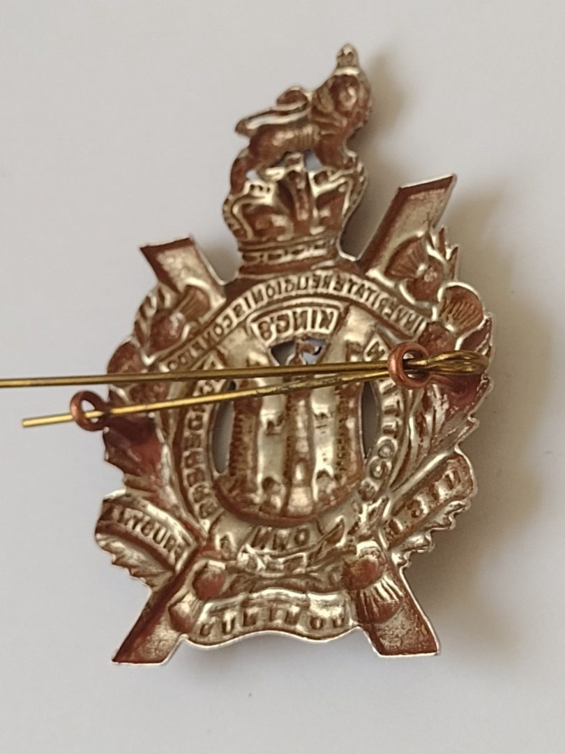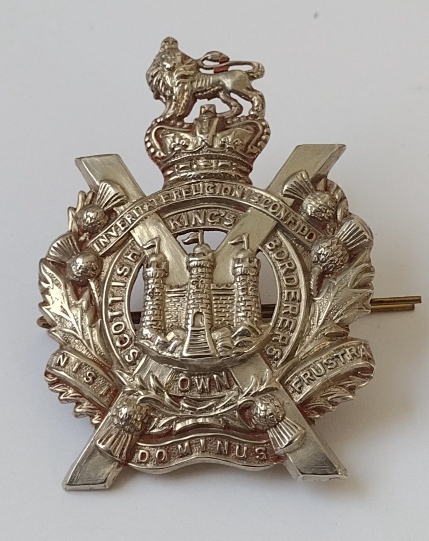 Original Victorian King’s Own Scottish Borderers Cap Badge QVC White Metal Antiq