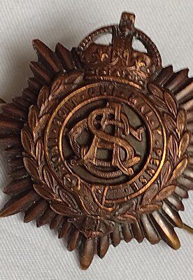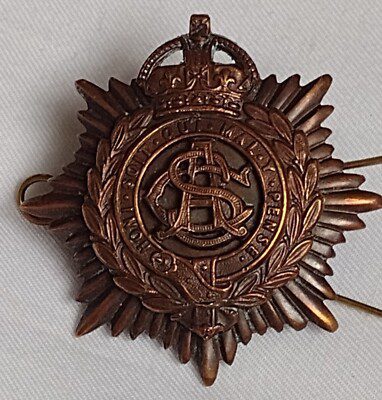 Original WW1 Army Service Corps Cap Badge KC Bronze 2 Parts Joined Antique