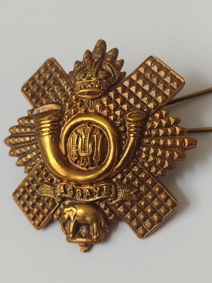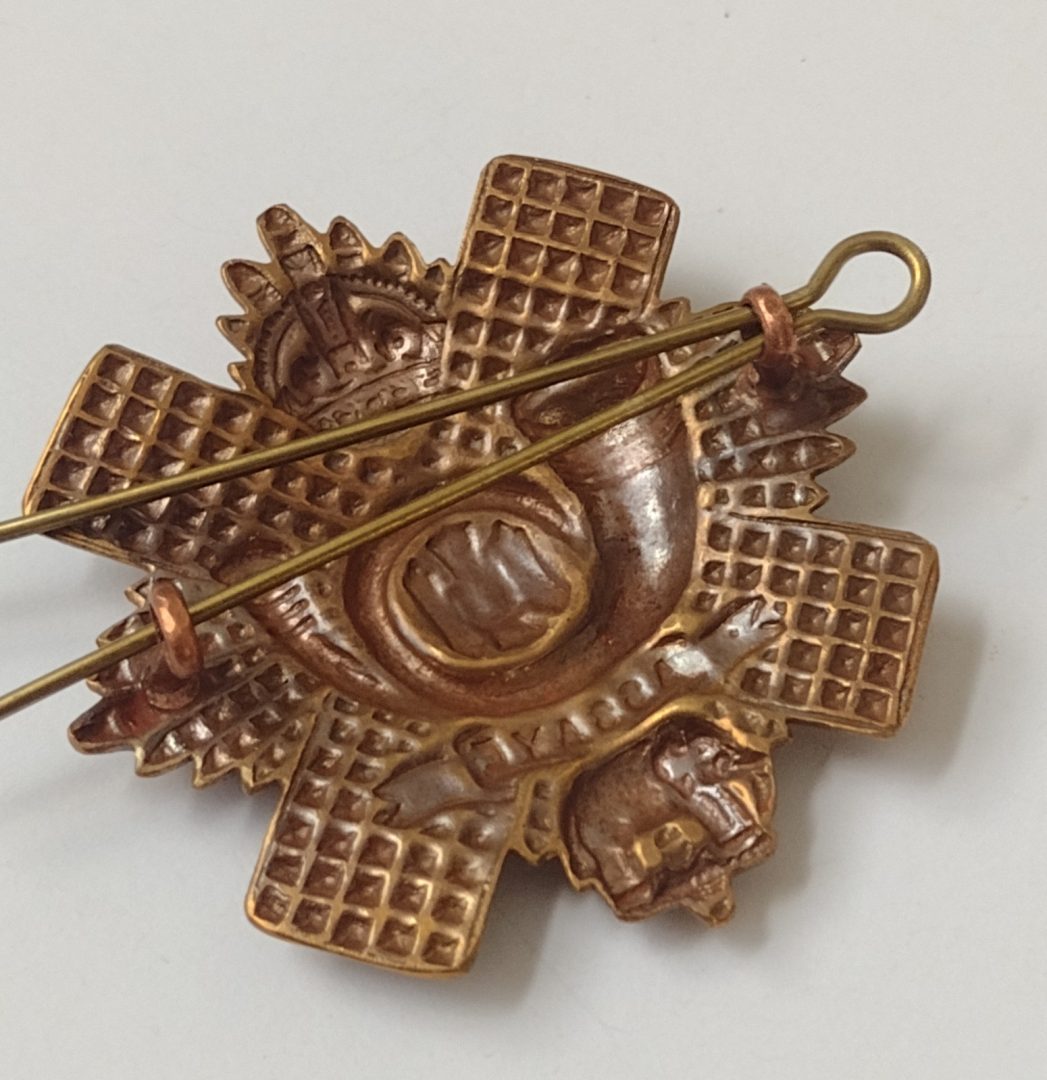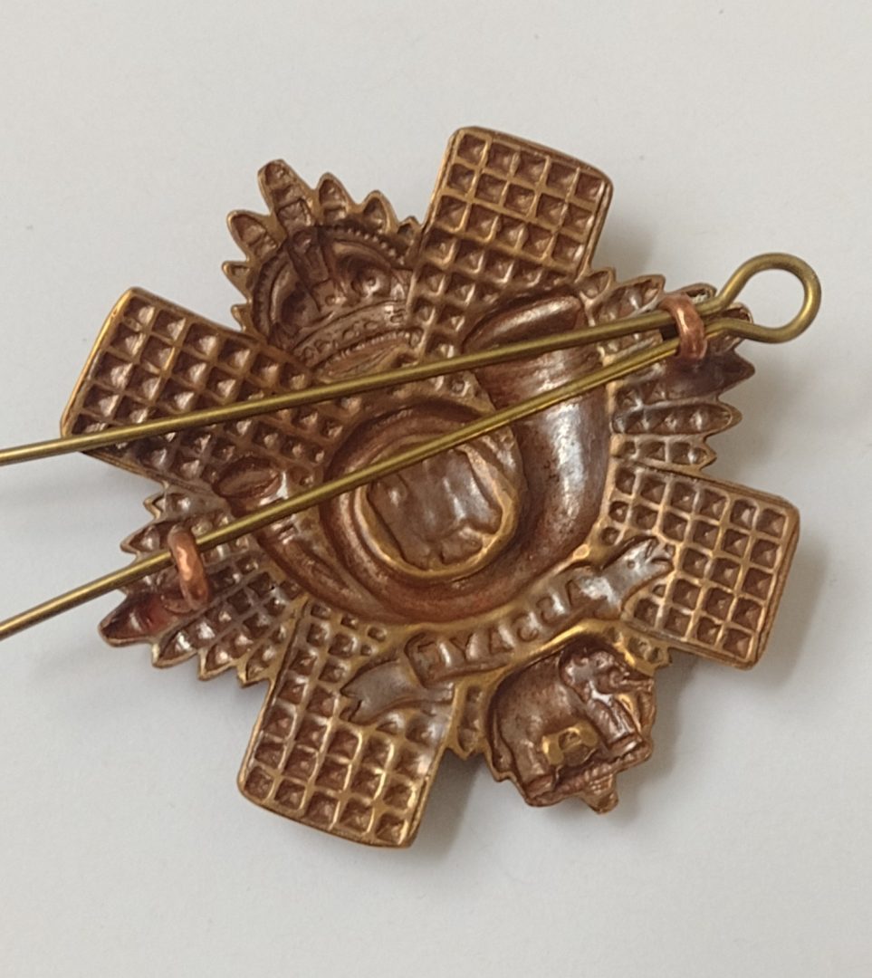 Original WW1 Highland Light Infantry Cap Badge KC Brass Economy 2 Lugs Antique