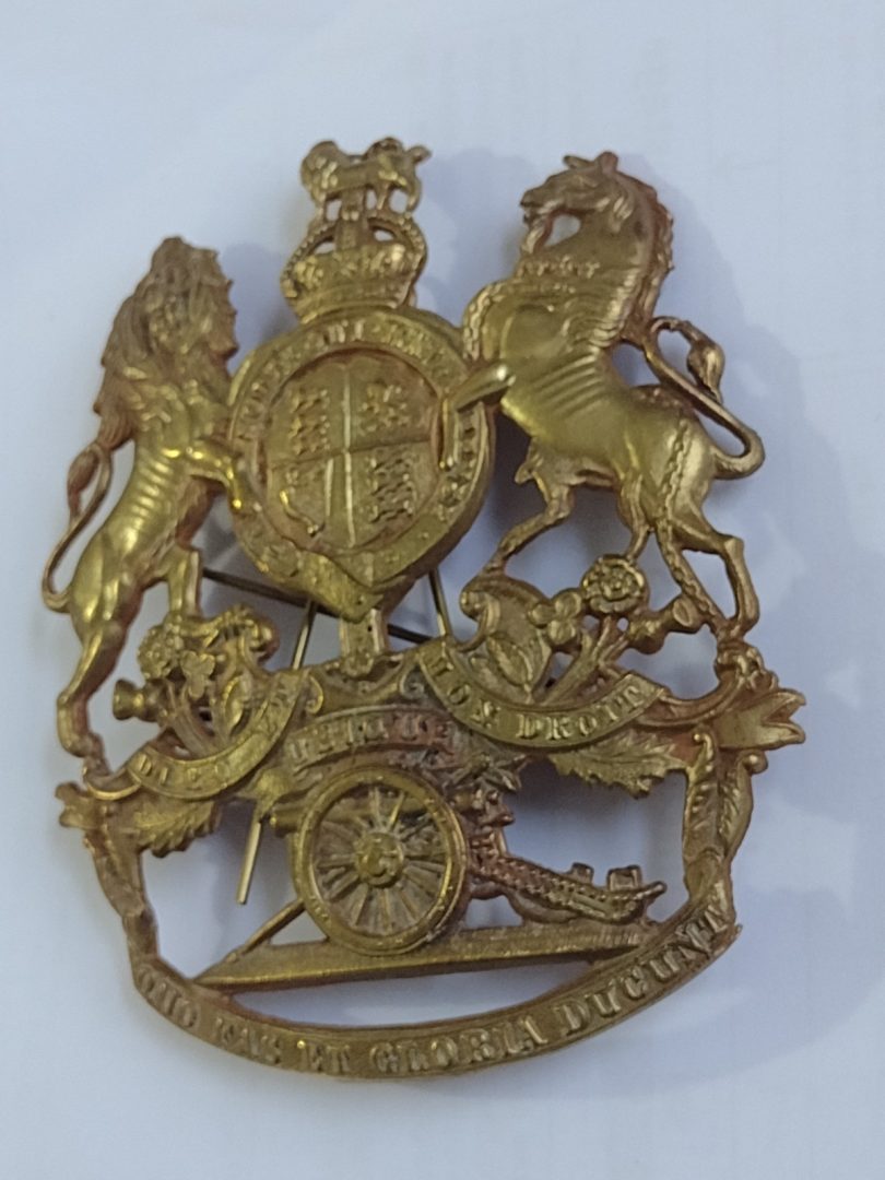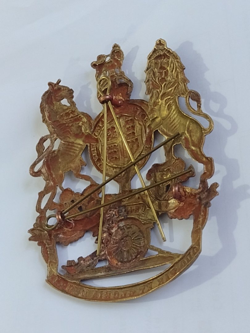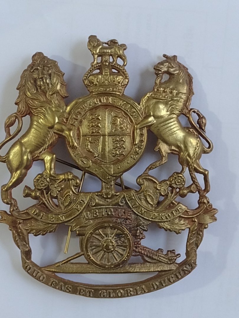 Original WW1 Royal Artillery Officer’s Helmet Plate KC Worn Between 1878 & 1902