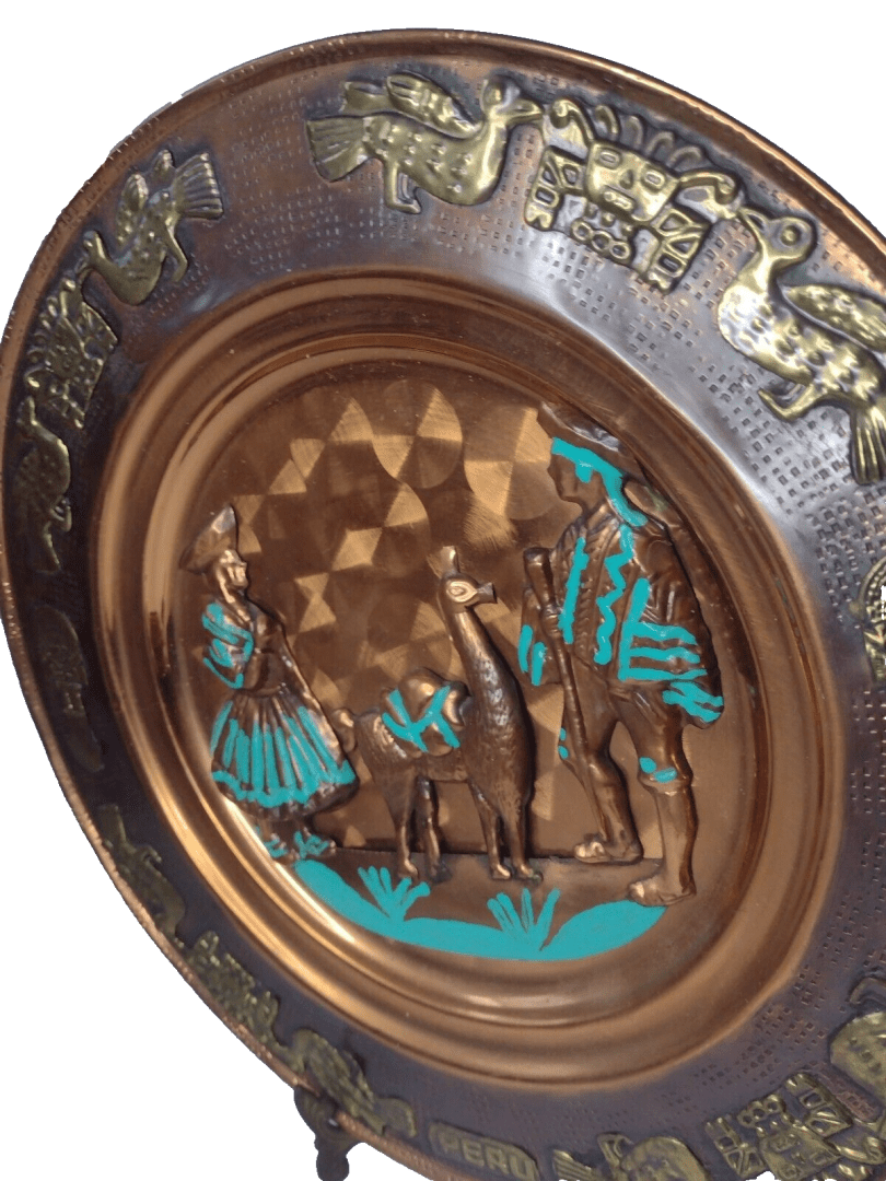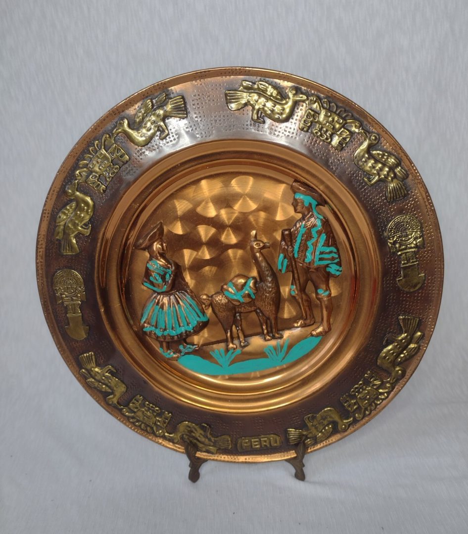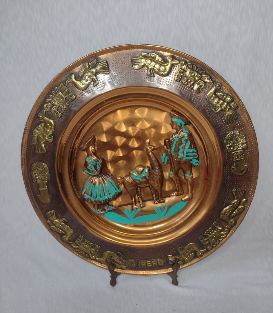 Peru Souvenir 3D Display Wall Hanging Plate Art & Deco Brass & Copper Original