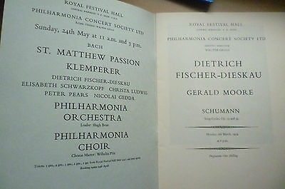 You are purchasing an original & vintage programme of: Philharmonia Concert Pro 1959-SCHUMANN-D. FISCHER DIESKAU,GERALD MOORE~Royal Hall