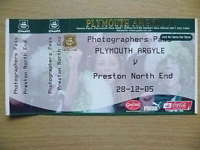 Photographers Pass- 2005 PLYMOUTH ARGYLE v PRESTON NORTH END, 28 December 2005