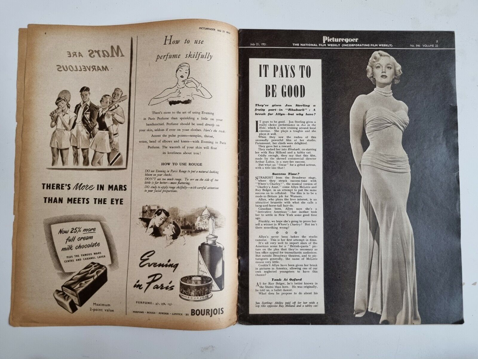 PICTUREGOER PIPER LAURIE BURT LANCASTER JAN STARLING JOHN MILLS – 15th DEC 1951