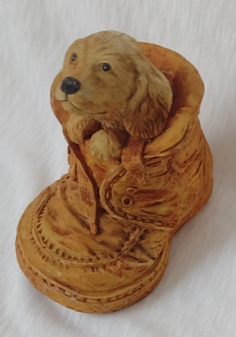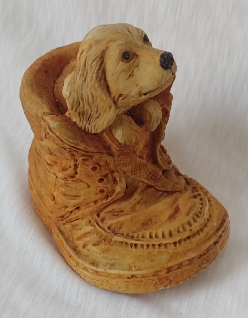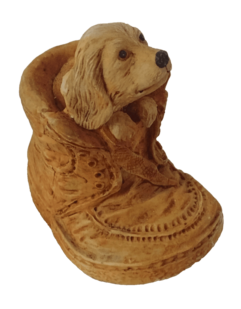 Puppy in a Boot Ornament Figurines Ceramic 11x10cm Vintage Original