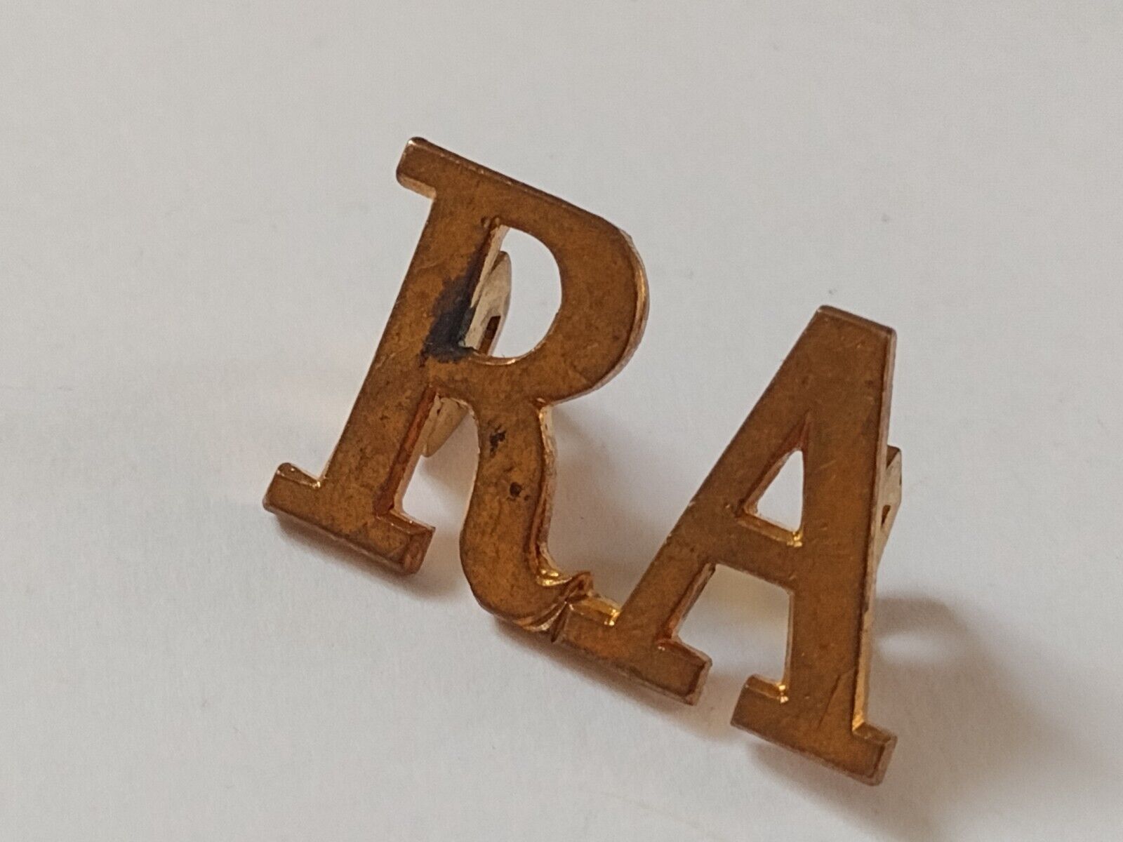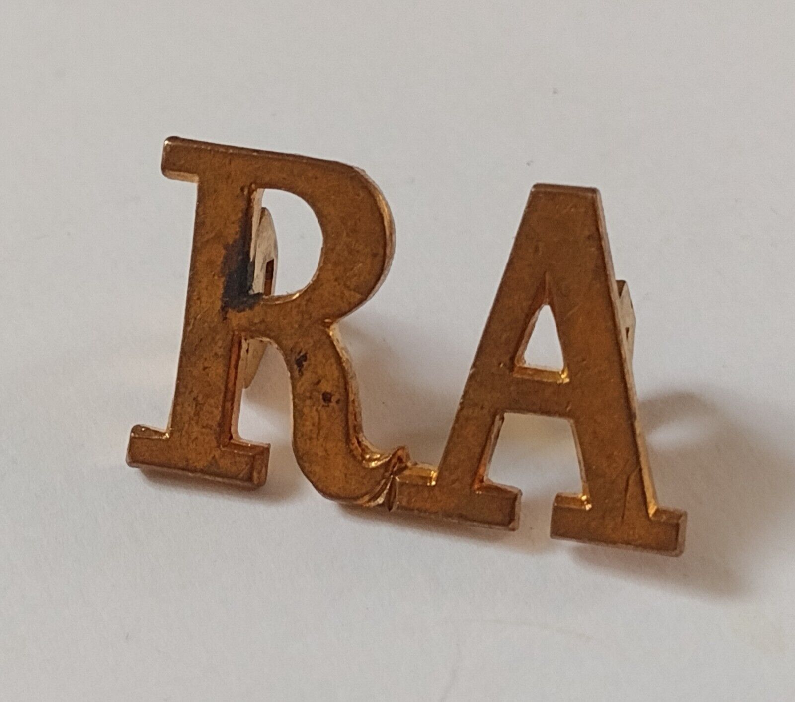 RA Title Royal Artillery Shoulder Title Badge Brass 2lugs 16mm Antique Org
