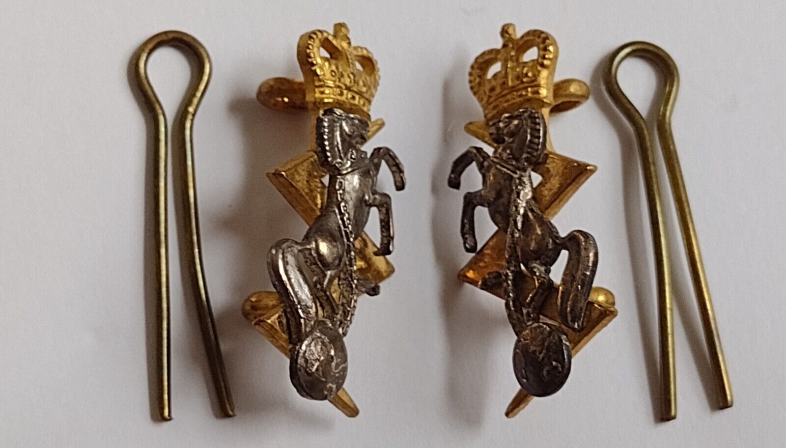REME Royal Electrical & Mechanical Engineers Collar Badge QC Gilt/Silver – PAIR
