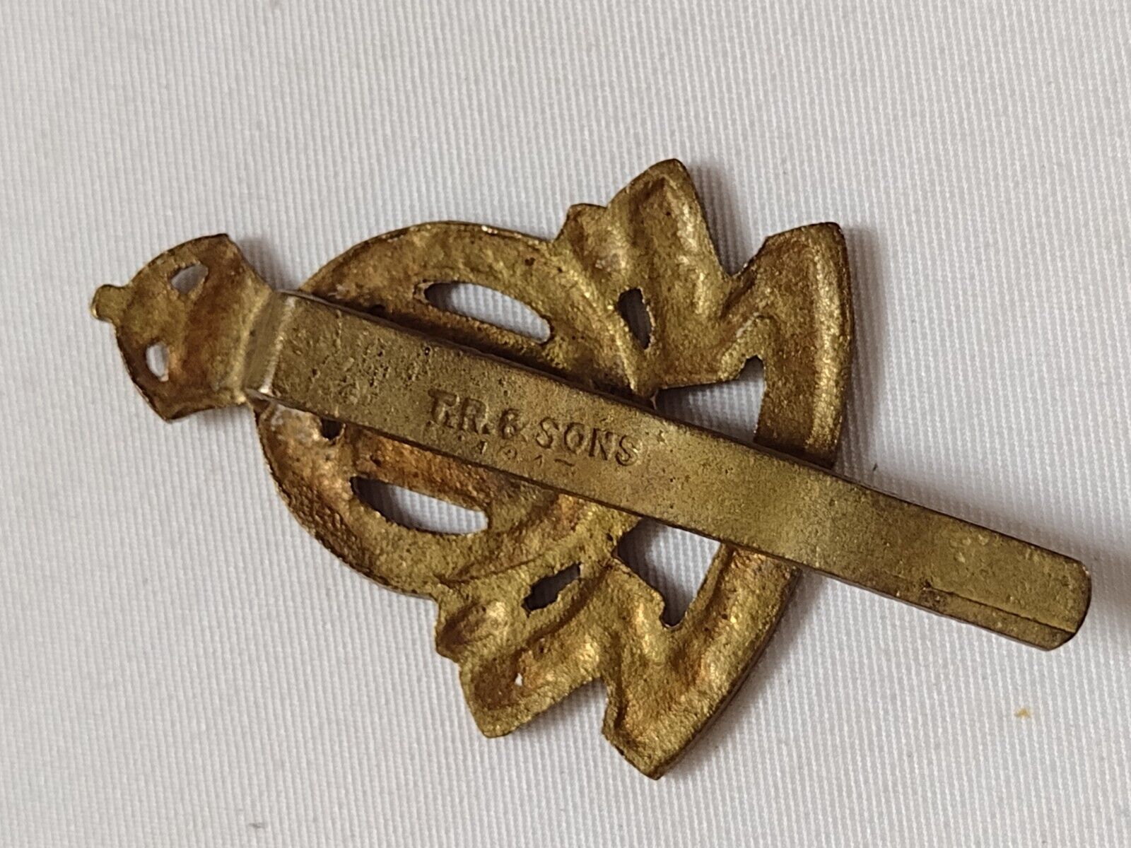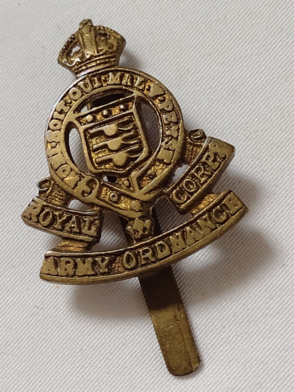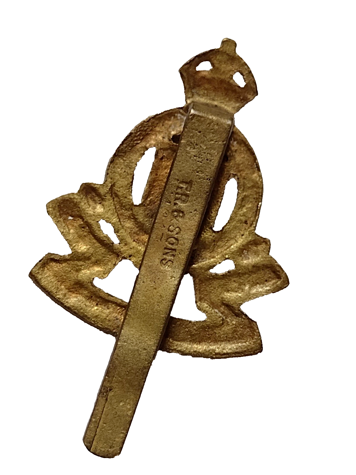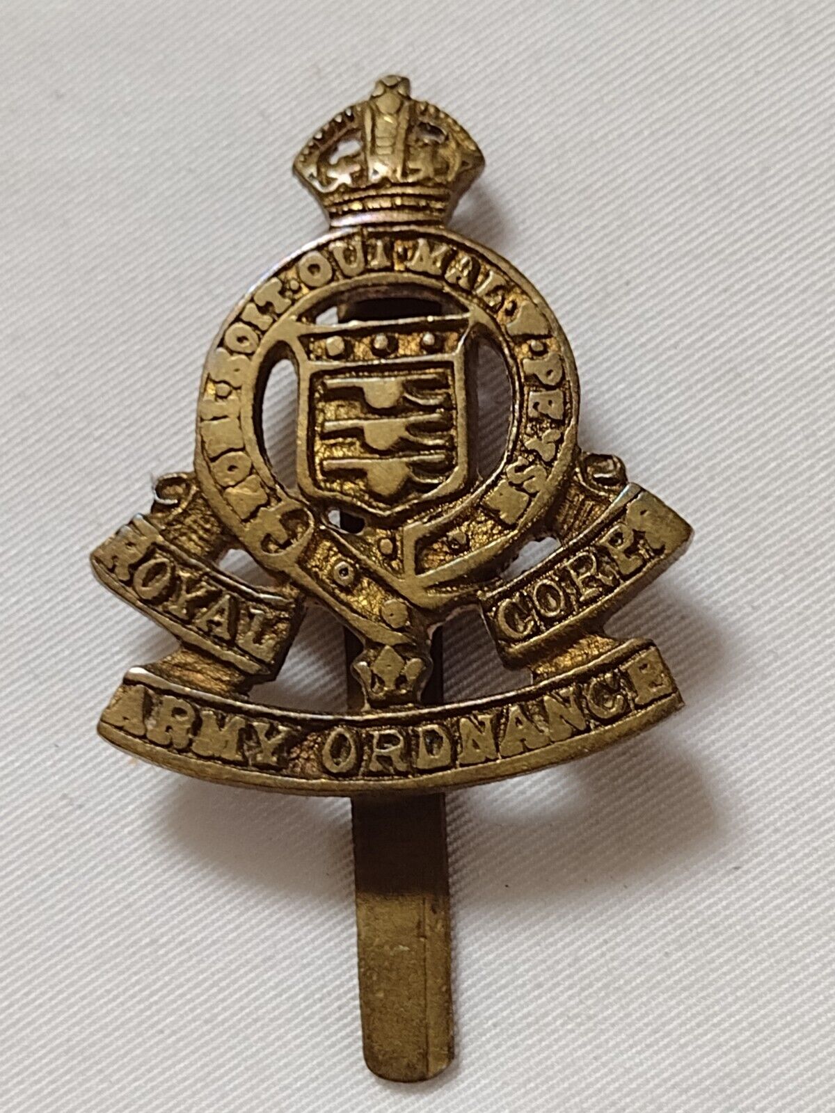 Royal Army Ordnance Corps Cap Badge KC Cast Brass Slider Maker TR & Son Vintage