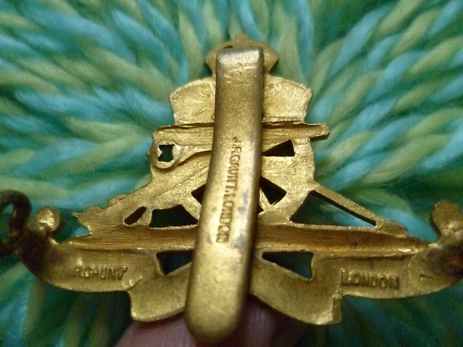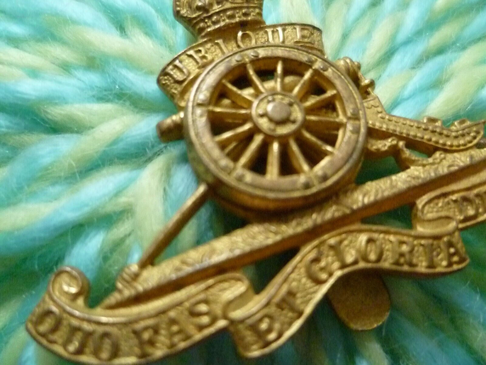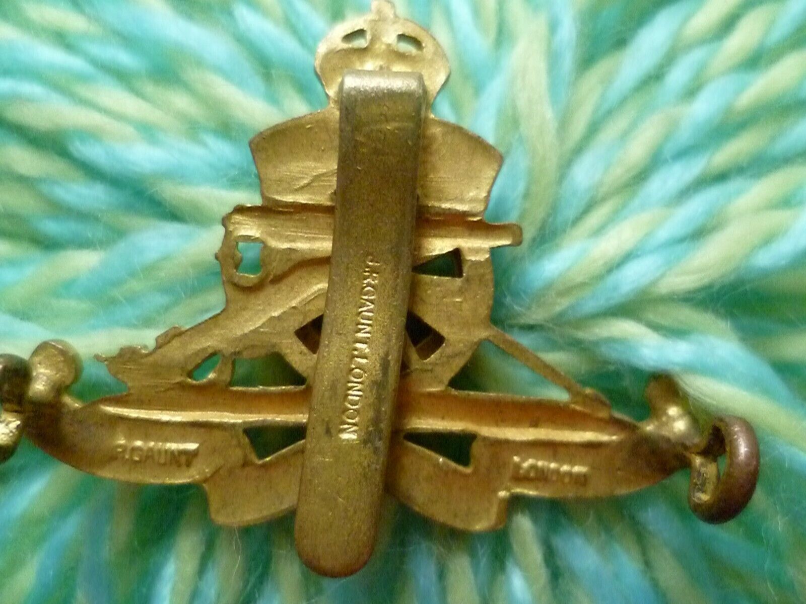 Royal Artillery Cap Badge KC GILT 2 Lugs & Slider maker JR GAUNT 36 mm ANTIQUE