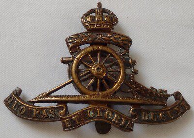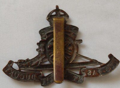 Royal Artillery Territorial Volunteers Cap Badge KC Slider All Brass ANTIQUE Org