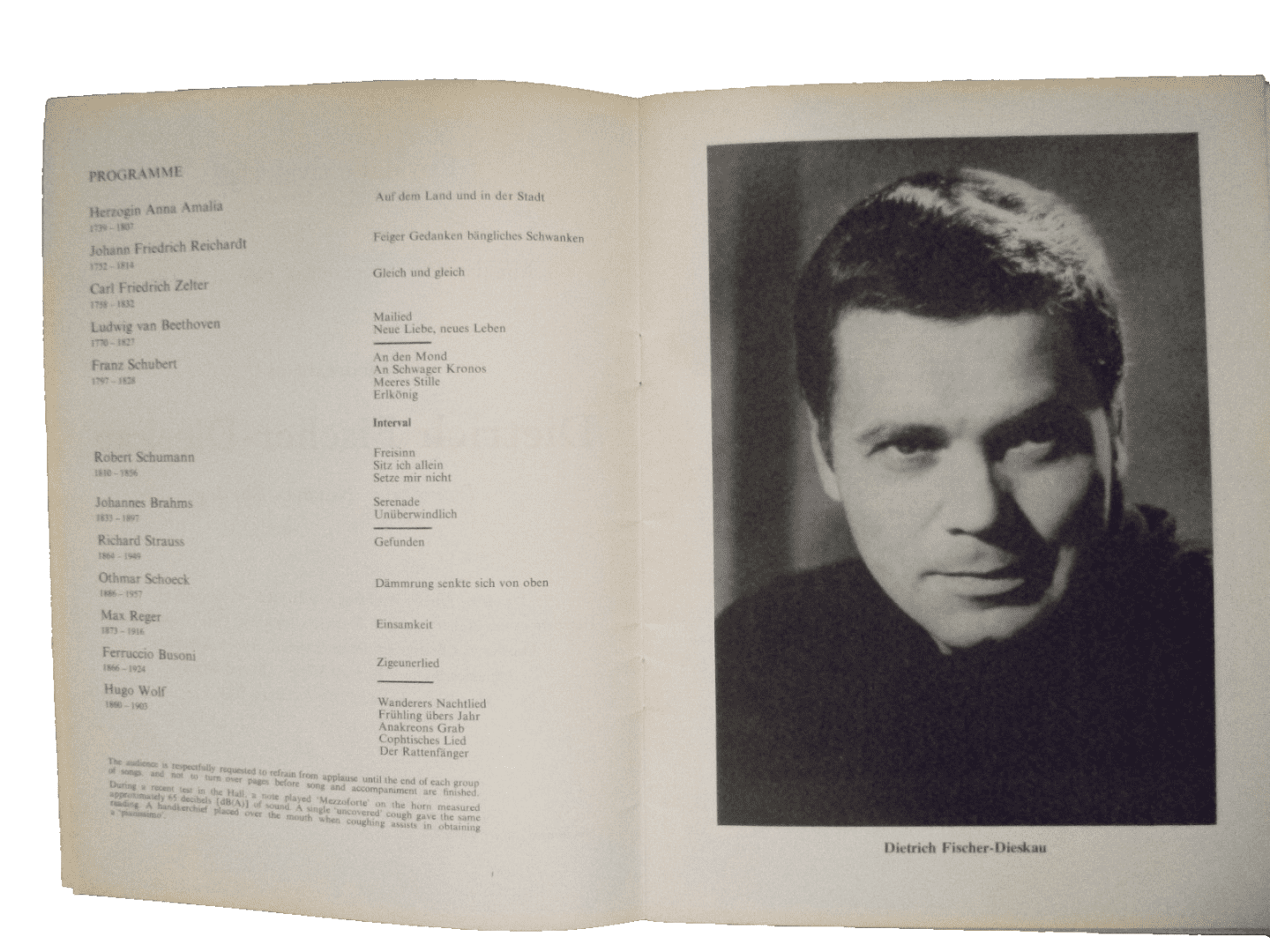 You are purchasing an original & vintage programme of: Royal Festival Hall Programme 1968- DIETRICH FISCHER DIESKAU with Norman Shetler
