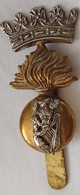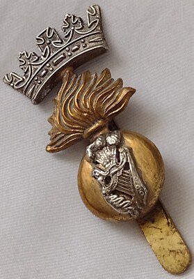 Royal Irish Fusiliers Cap Badge Bi-Metal Slider 43 mm maker JR Gaunt ANTIQUE Org