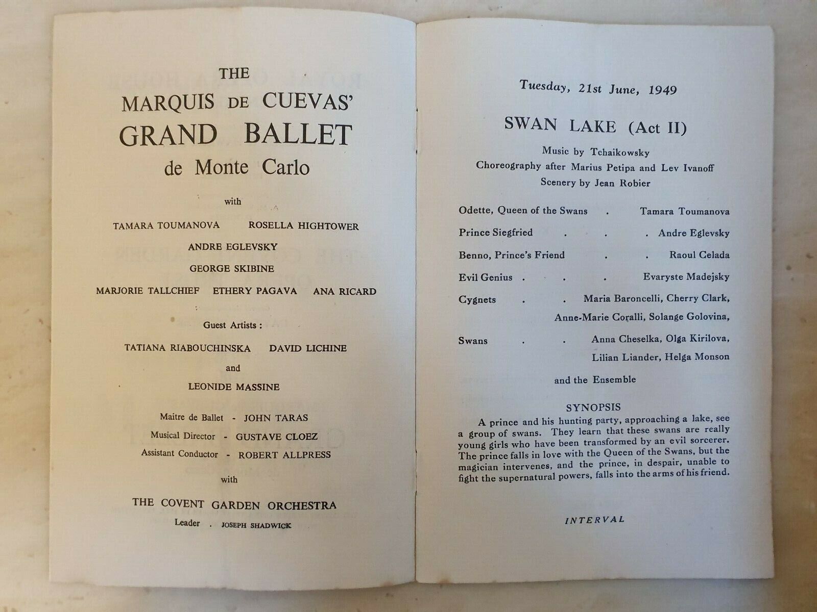 ROYAL OPERA HOUSE COVENT GARDEN MARQUISE DE CUEVAS’ GRAND BALLET DE MONTECARLO
