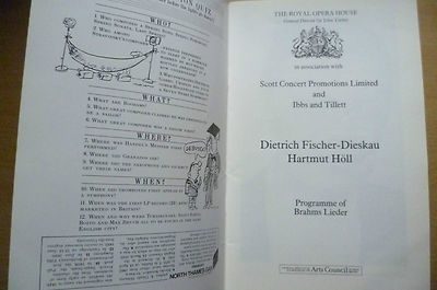 Royal Opera House Programme 1985- DIETRICH FISCHER DIESKAU Hartmut Holl