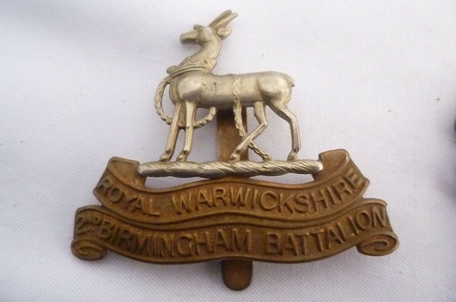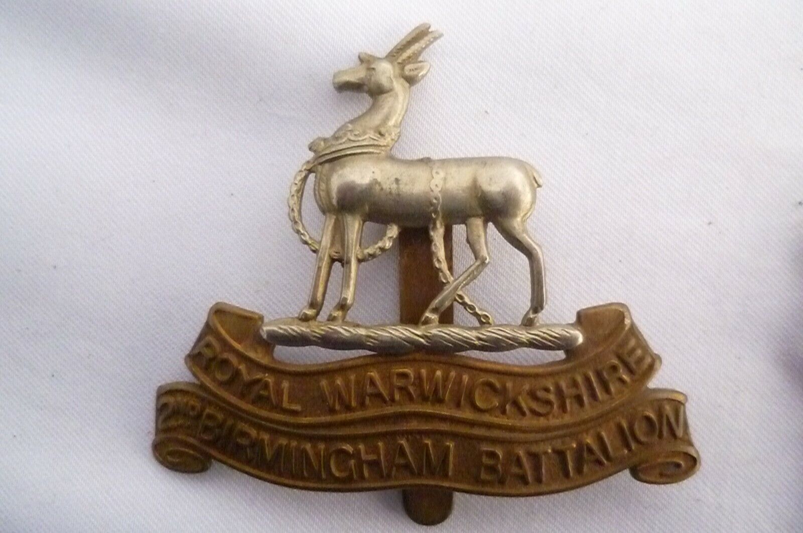 Royal Warwickshire 2nd Birmingham Batt Cap Badge Bi-Metal Slider Vintage Org