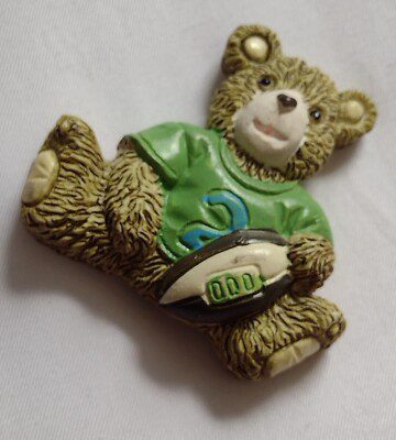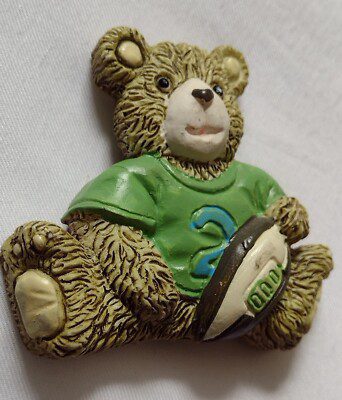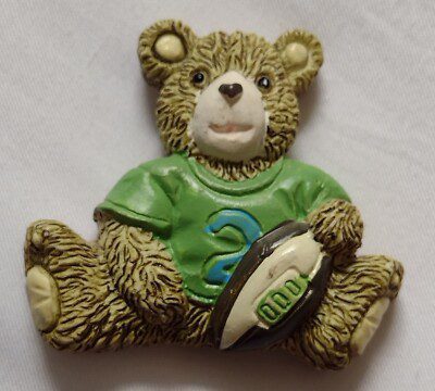 Rugby Teddy Bear Resin Figurine Holding Rugby Ball Magnet on Rear Vintage