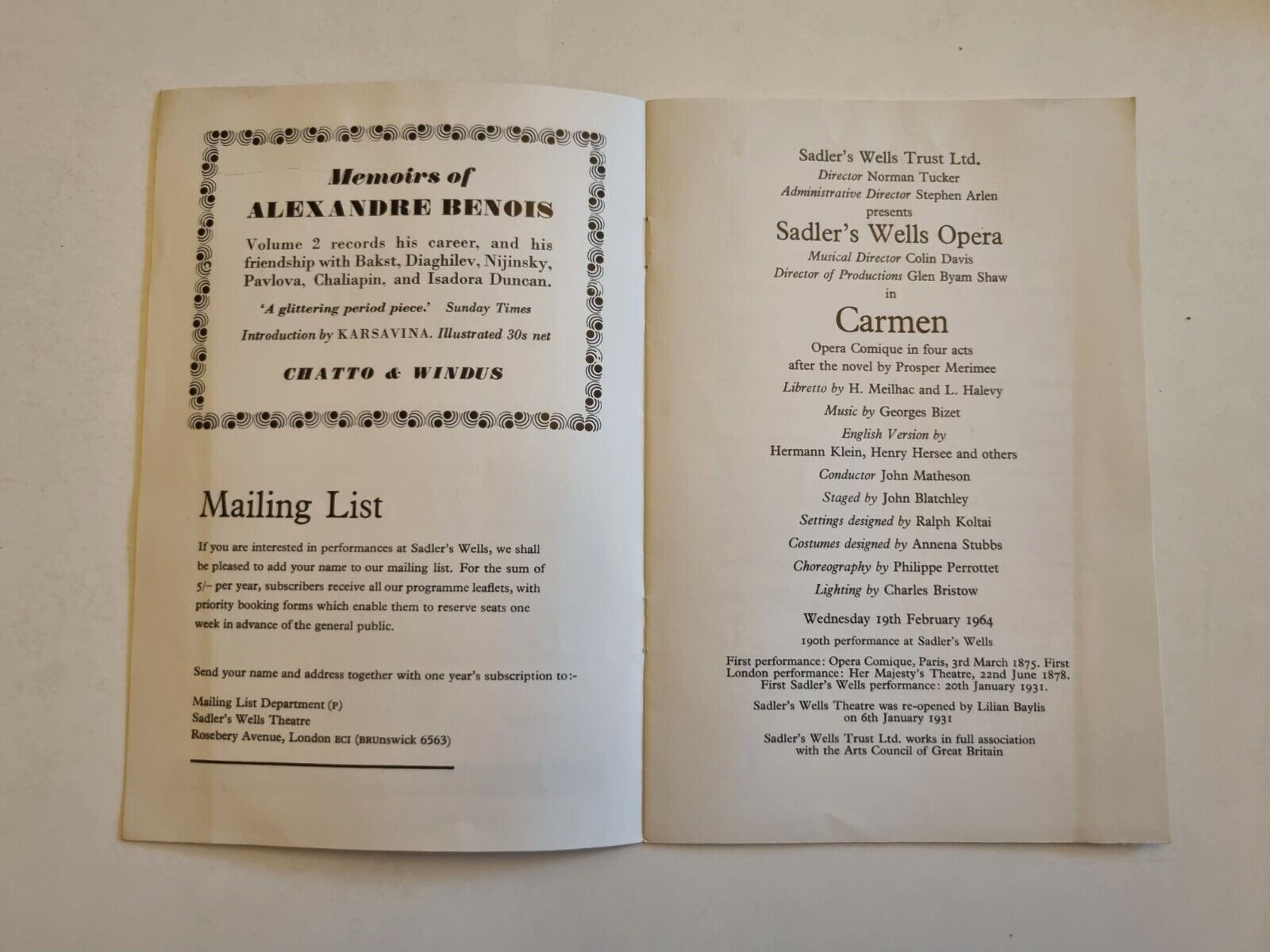 SADLER’S WELLS OPERA CARMEN – SHIRLEY CHAPMAN MICHAEL MAUREL WENDY BALDWIN
