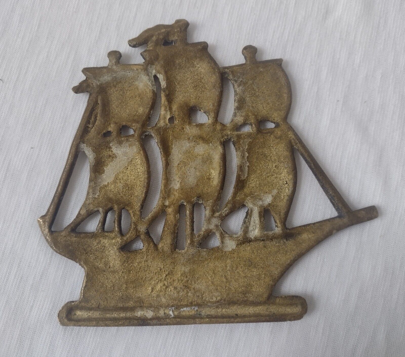 Sailing Ship Souvenir Decorative Wall Plaque Excellent Quality Brass Vintage