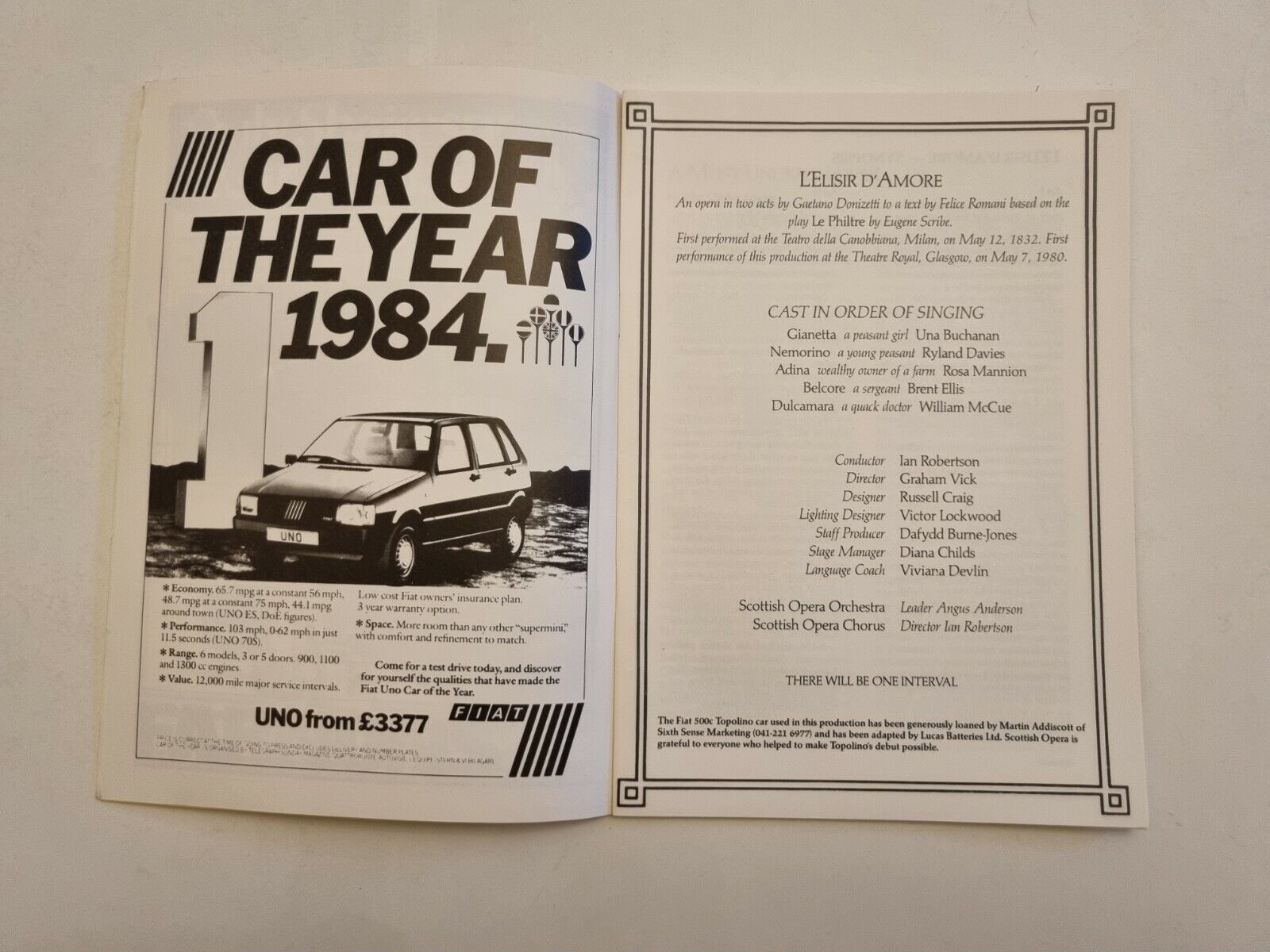 SCOTISH OPERA L’ELISIR D’AMORE – UNA BUCHANAN RYLAND DAVIES ROSA MANNION