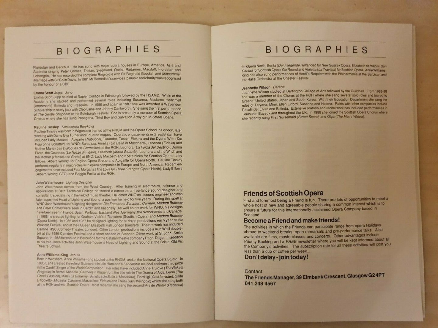 SCOTTISH OPERA: JENUFA – ANNE WILLIAMS-KING CLAIRE LIVINGSTONE ALBERTO REMEDIOS
