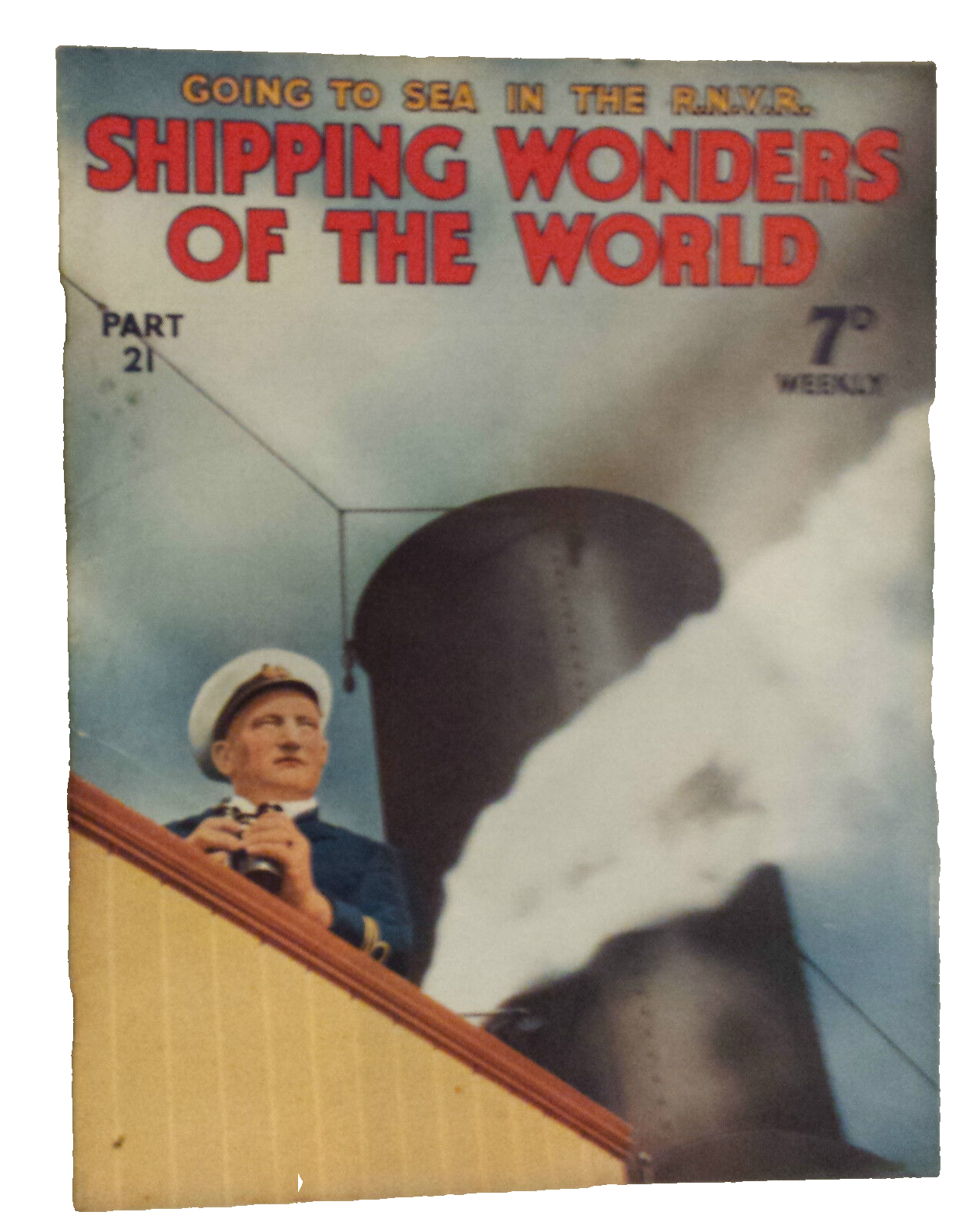 Shipping wonders of the world is a weekly magazine produced in 1936/37 in about 50 parts. It contains all the great stories about everything to do with shipping before and at the time of publication. The magazine comes with fantastic black and white photos inside and colour illustrated covers. an interesting magazine for any ship