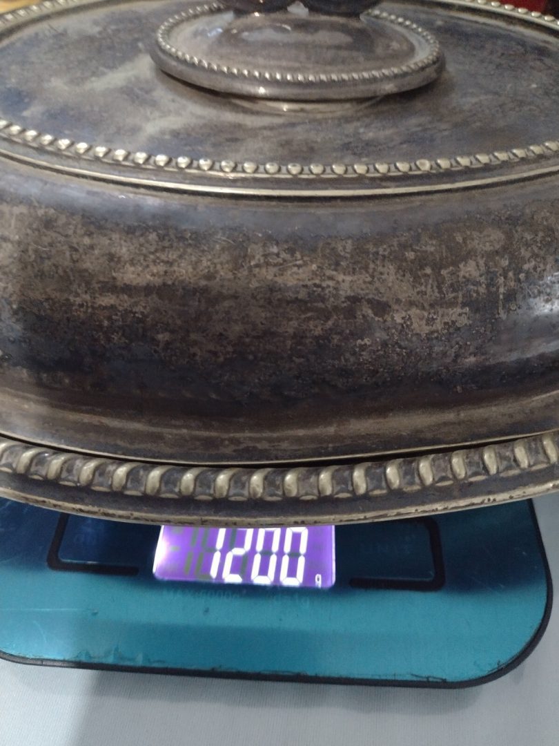Size approximately edge to edge height 13 cm x Length 28 cm x Wide 20.5 cm. I believe this to be an Original badge, in very good condition but showing genuine signs of age….Dish is EPNS Signed but & On Lidded Hard Soldered Signed….(May be Lidded & Dish not matching pair Please study pictures carefully to decide)