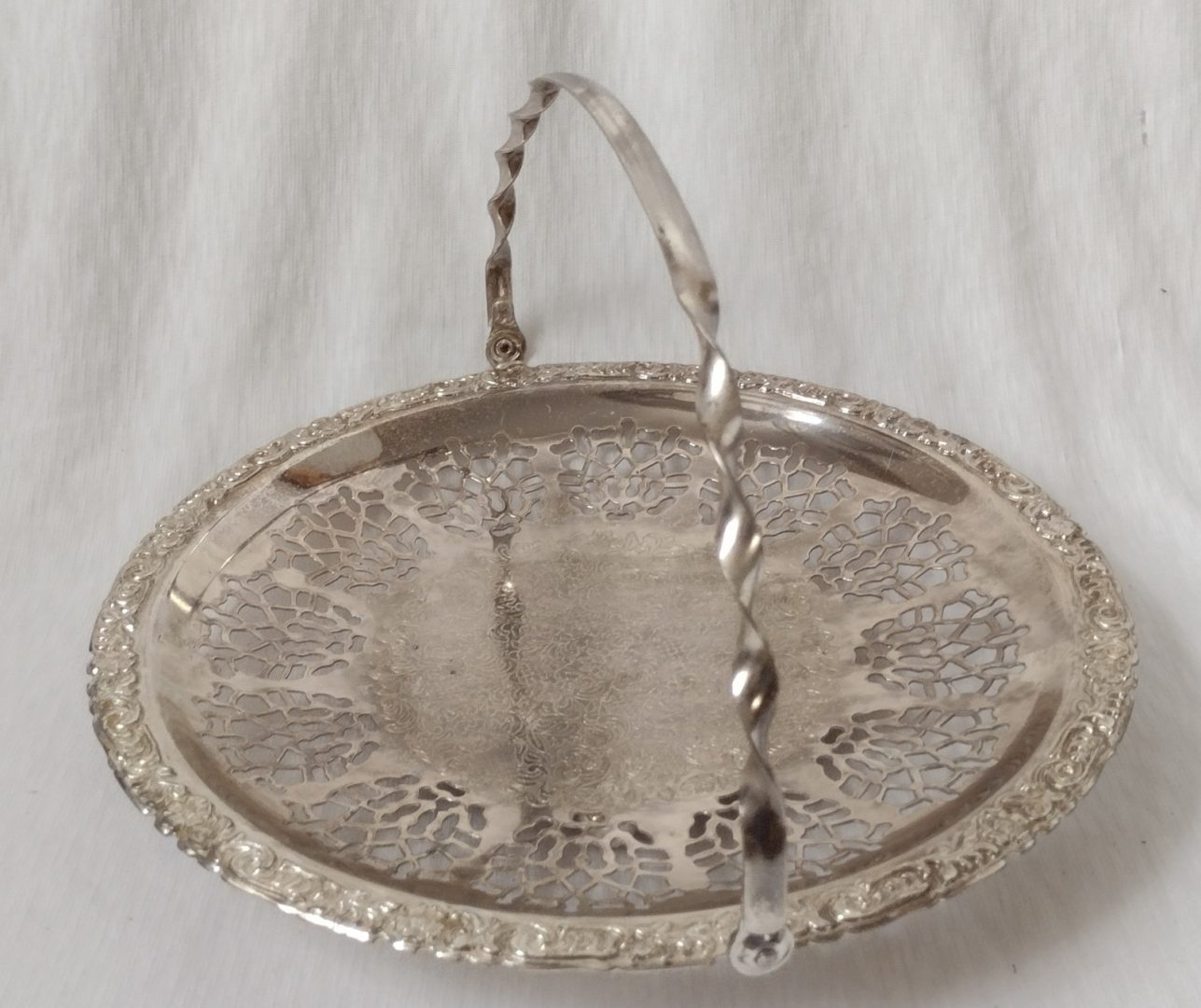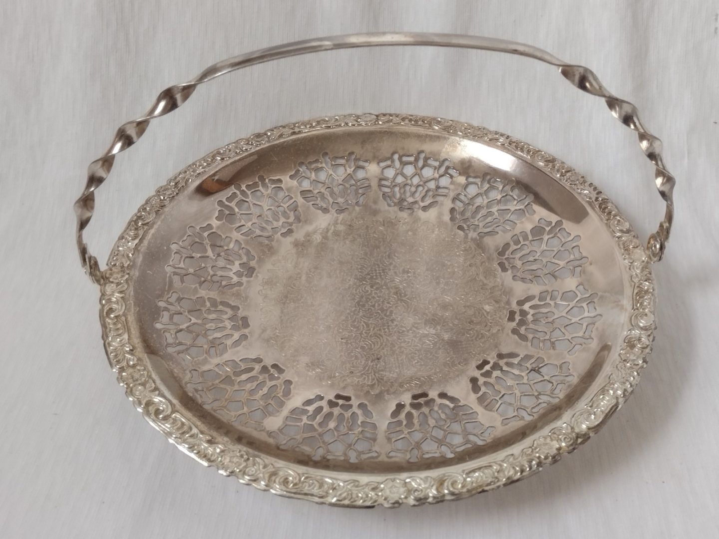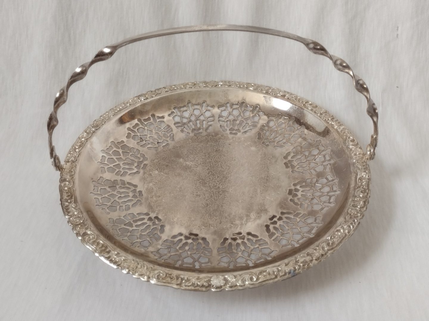Silver Plate Round Tray With Handle Art Nouveau Pierced Plate Sandwich Fruits