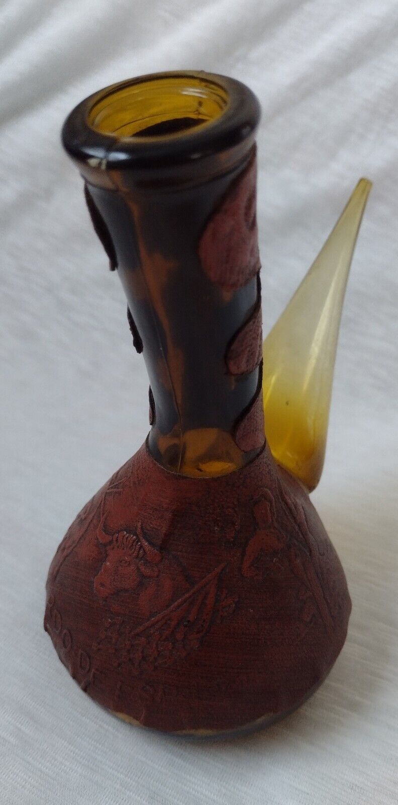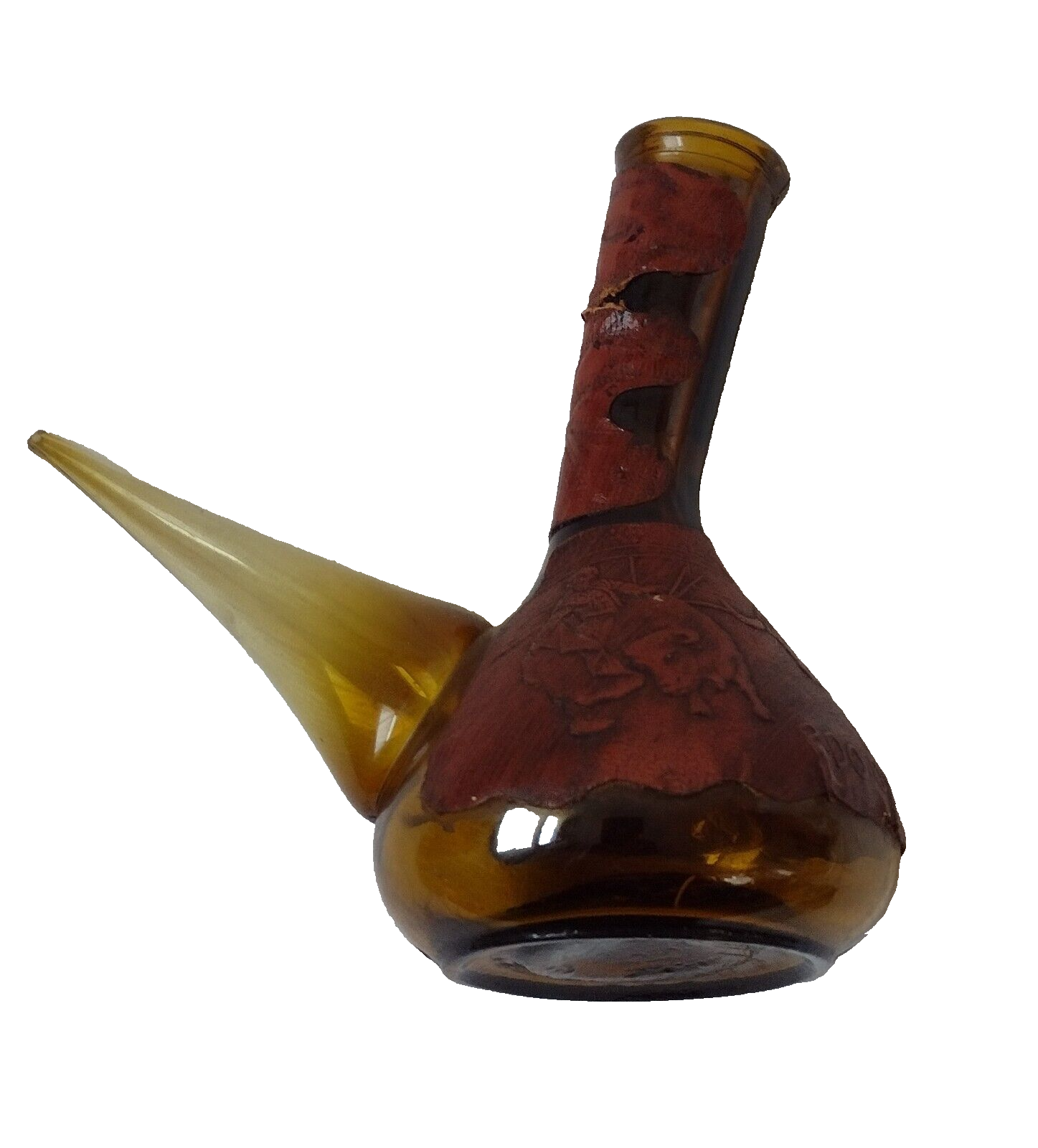 Spanish Wine Decanter Retro Amber Glass Leather Wrapped Rdo-De-Espa marked
