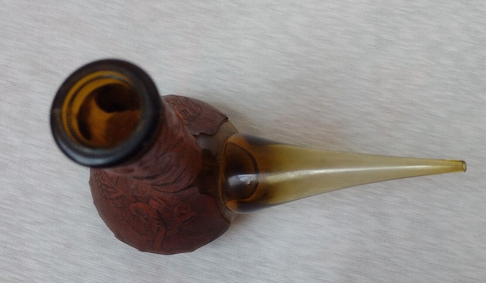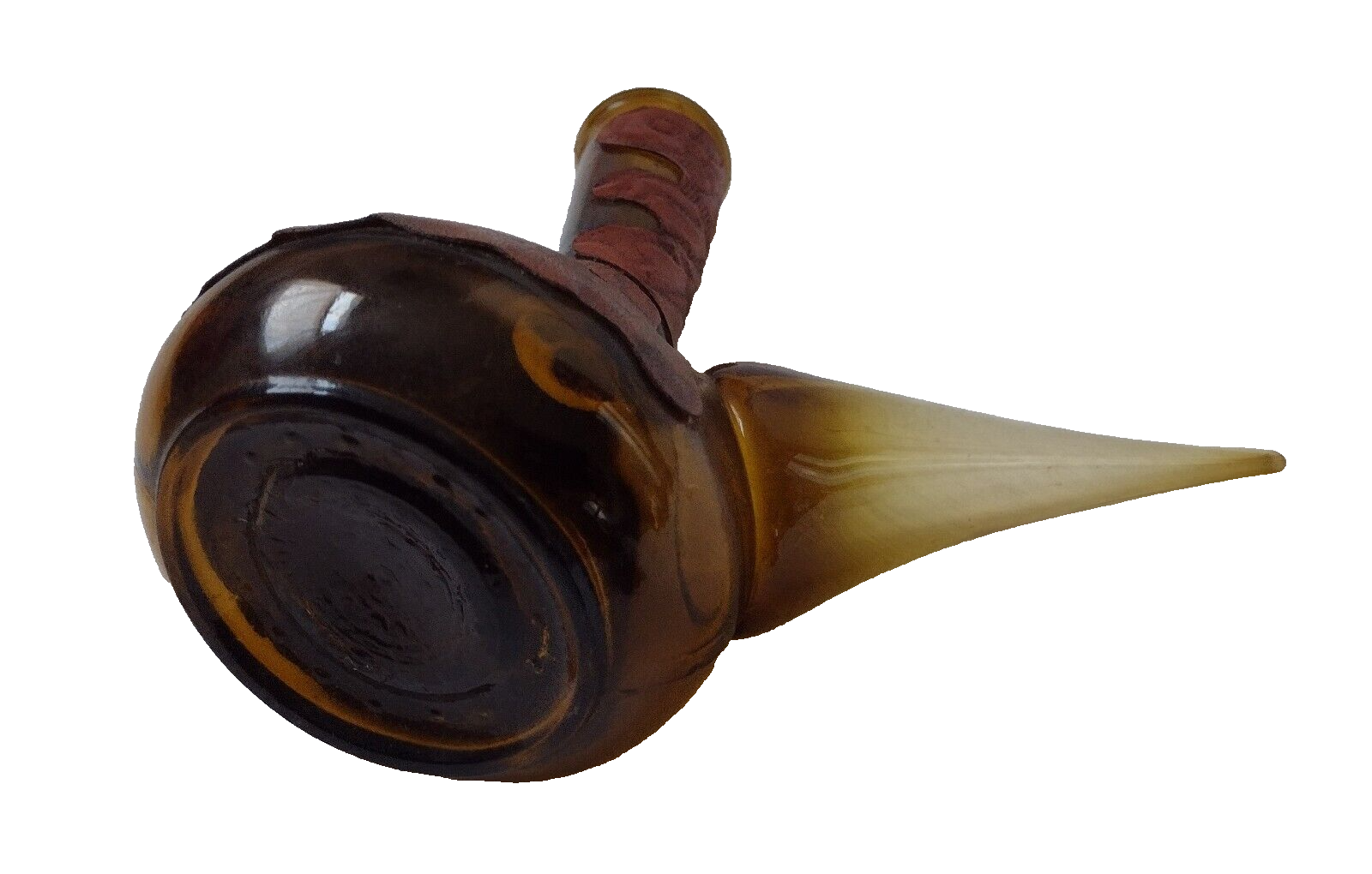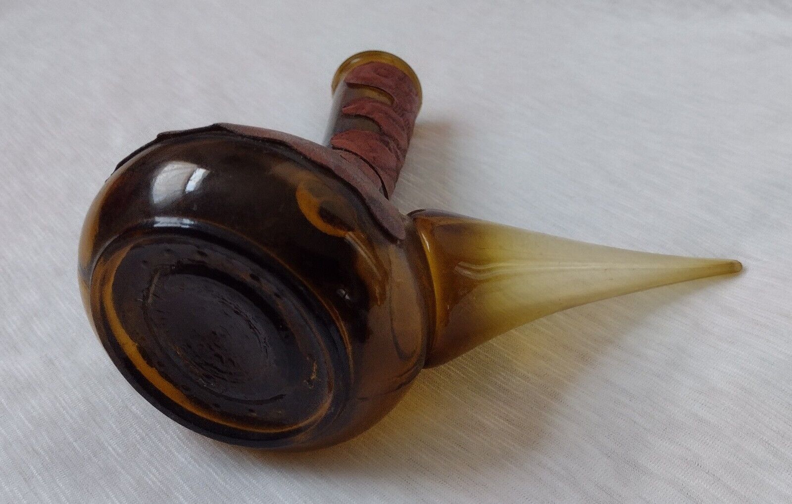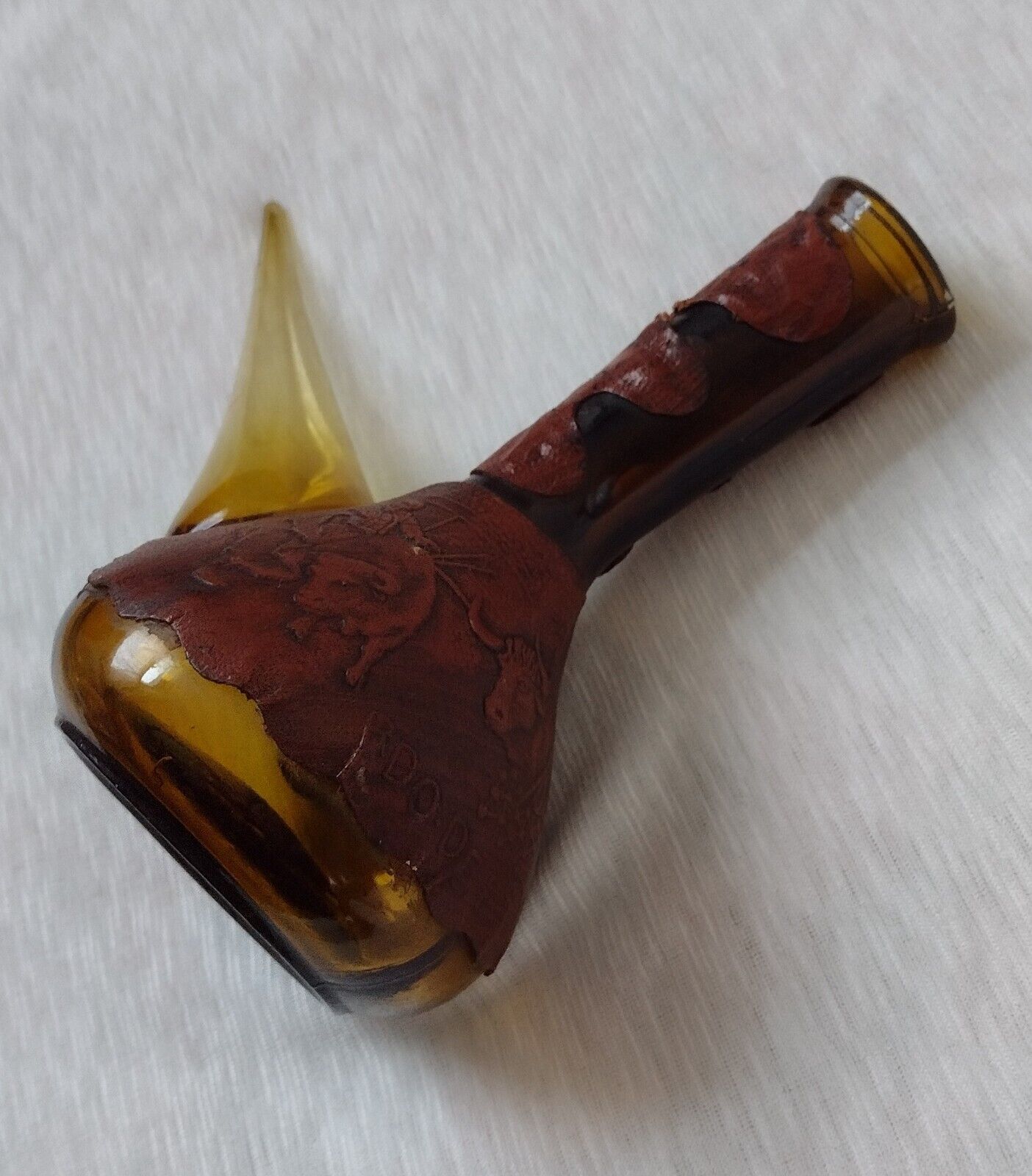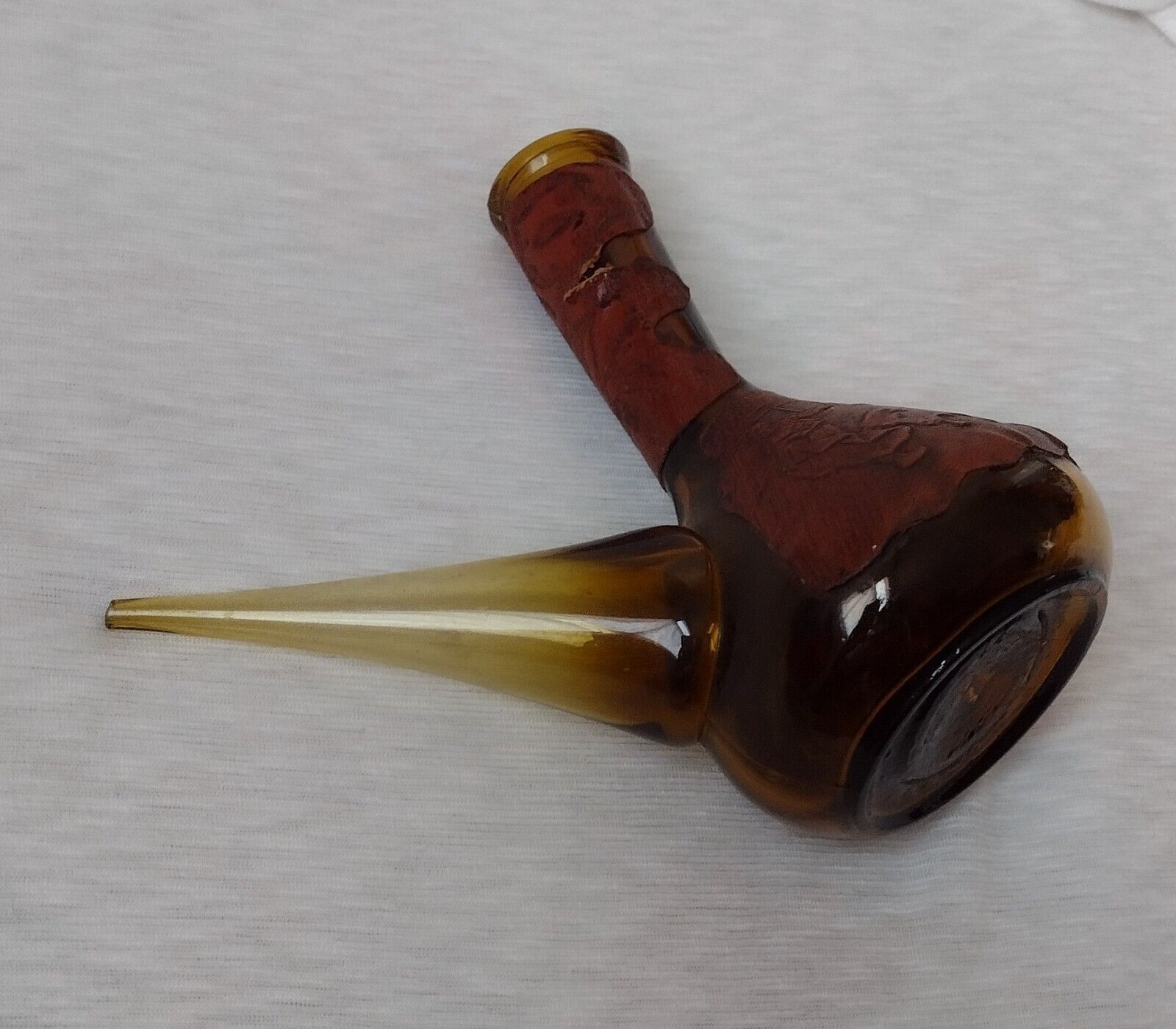Spanish Wine Decanter Retro Amber Glass Leather Wrapped Rdo-De-Espa marked——