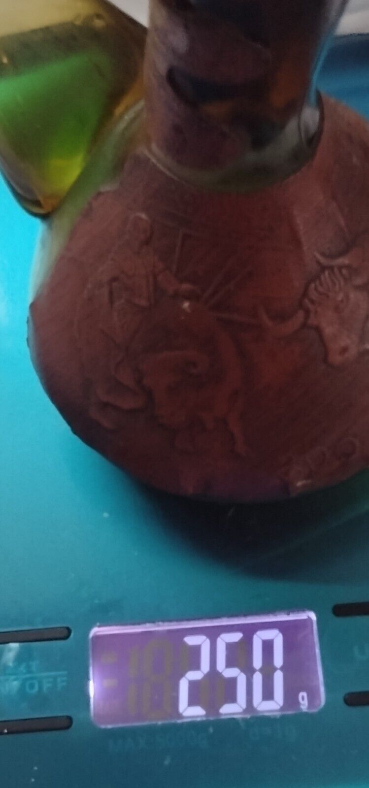 "Size approximately Height 15 cm x Length 18 cm x Width 8 cm --Spanish Wine Decanter Retro Amber Glass Leather Wrapped Rdo-De-Espa marked------ I believe this to be an original item, in very good condition but showing genuine signs of age....Vintage items.....Please study pictures carefully to decide."
