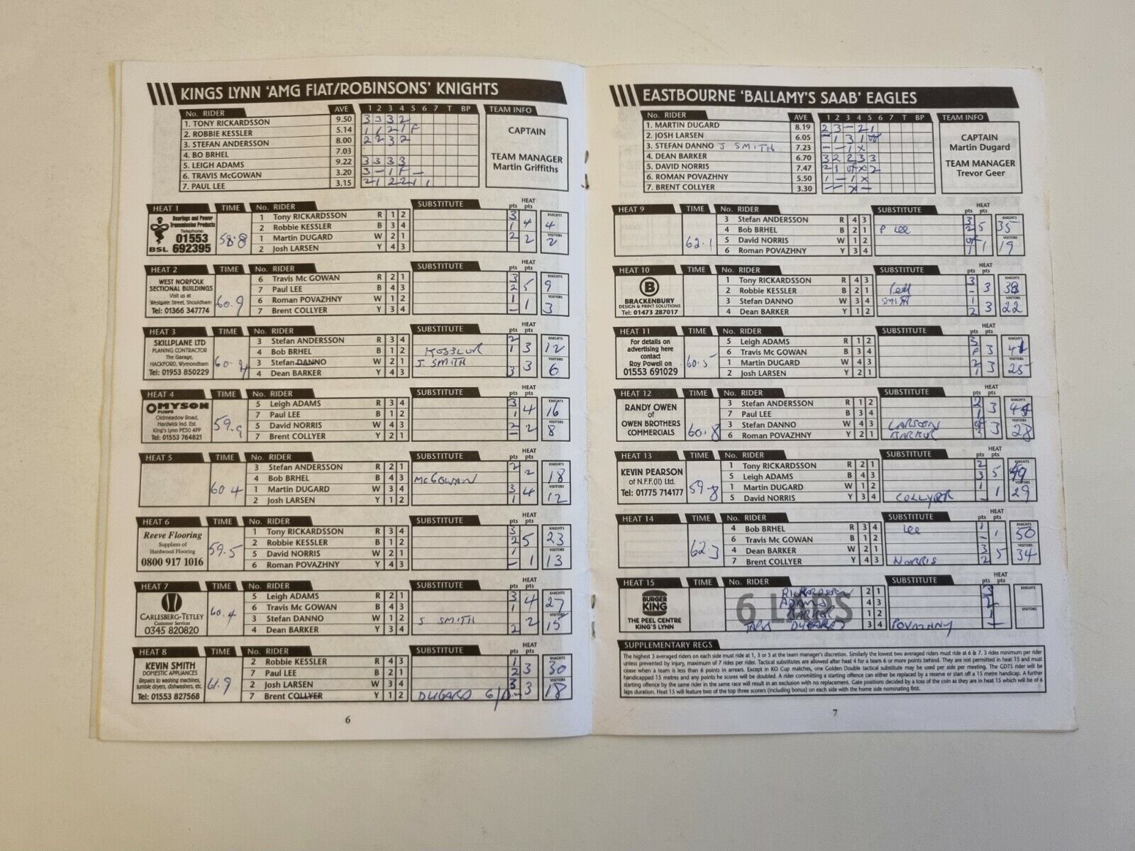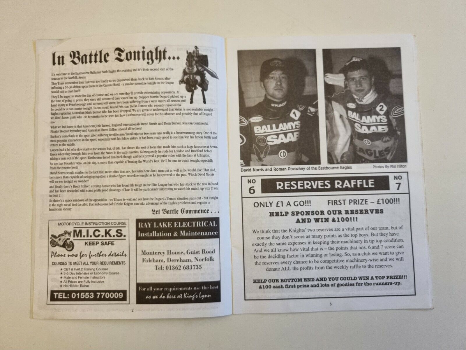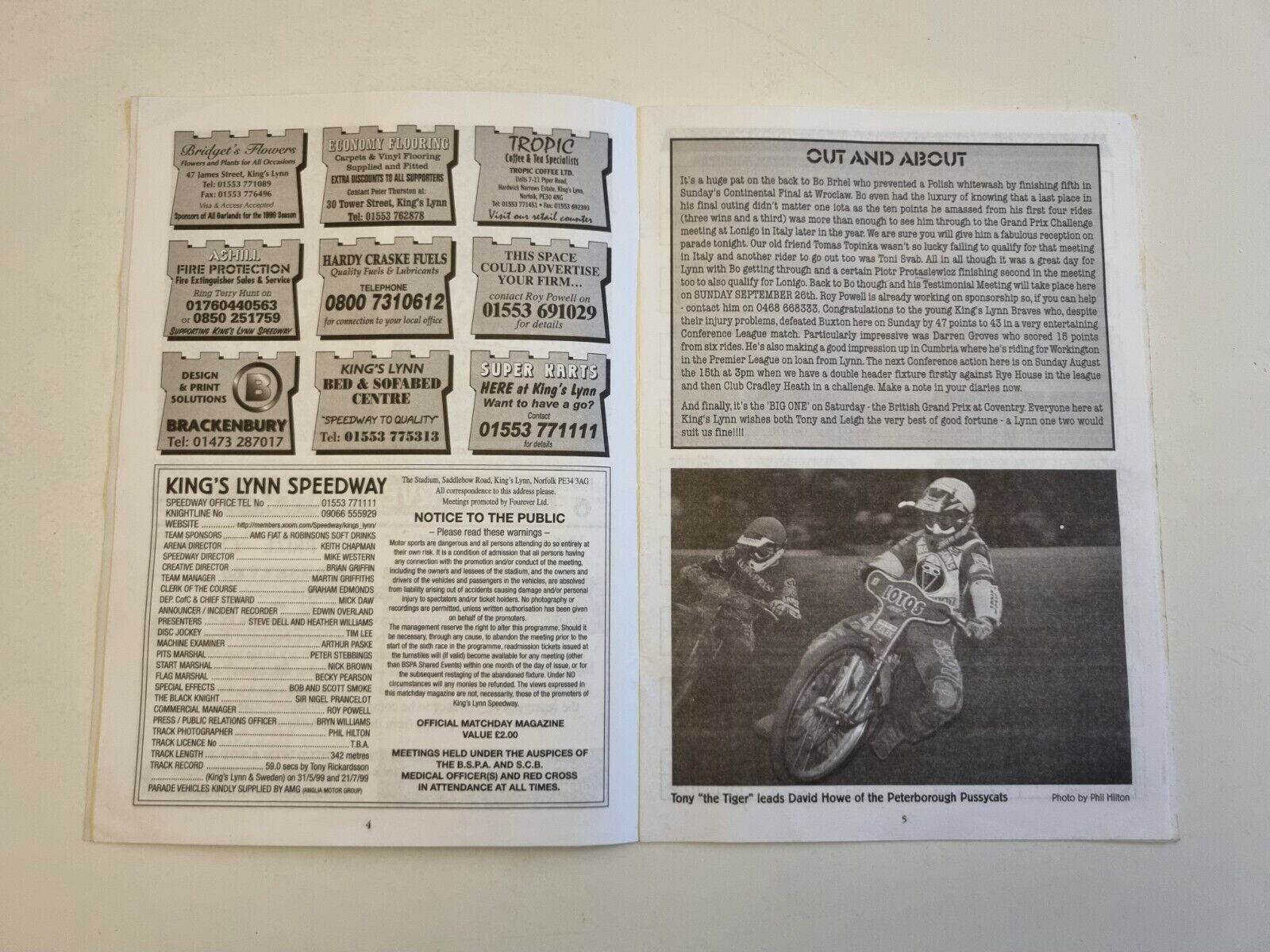 SPEEDWAY KING’S LYNN PROGRAMME 28th JULY 1999