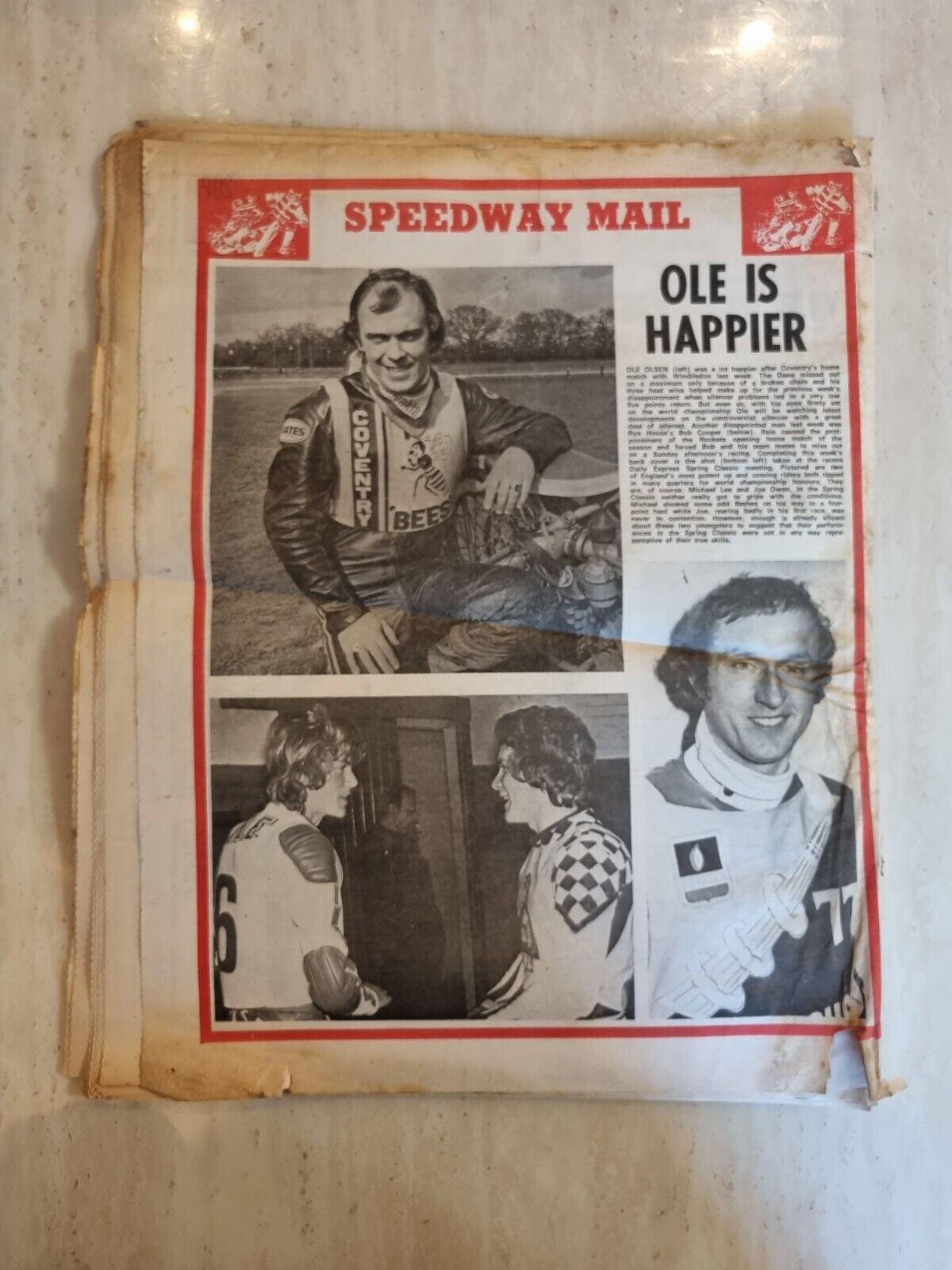 You are purchasing very collectible speedway magazine/Newspaper SPEEDWAYMAIL. The Magazine features photos and articles on Speedway racing stars of the day. Please note that the magazine has fold, wear and tears to the edges and some discoloration may be found in some of the pages , otherwise it is in good overall condition for its age. Please see picture as it forms part of the description.