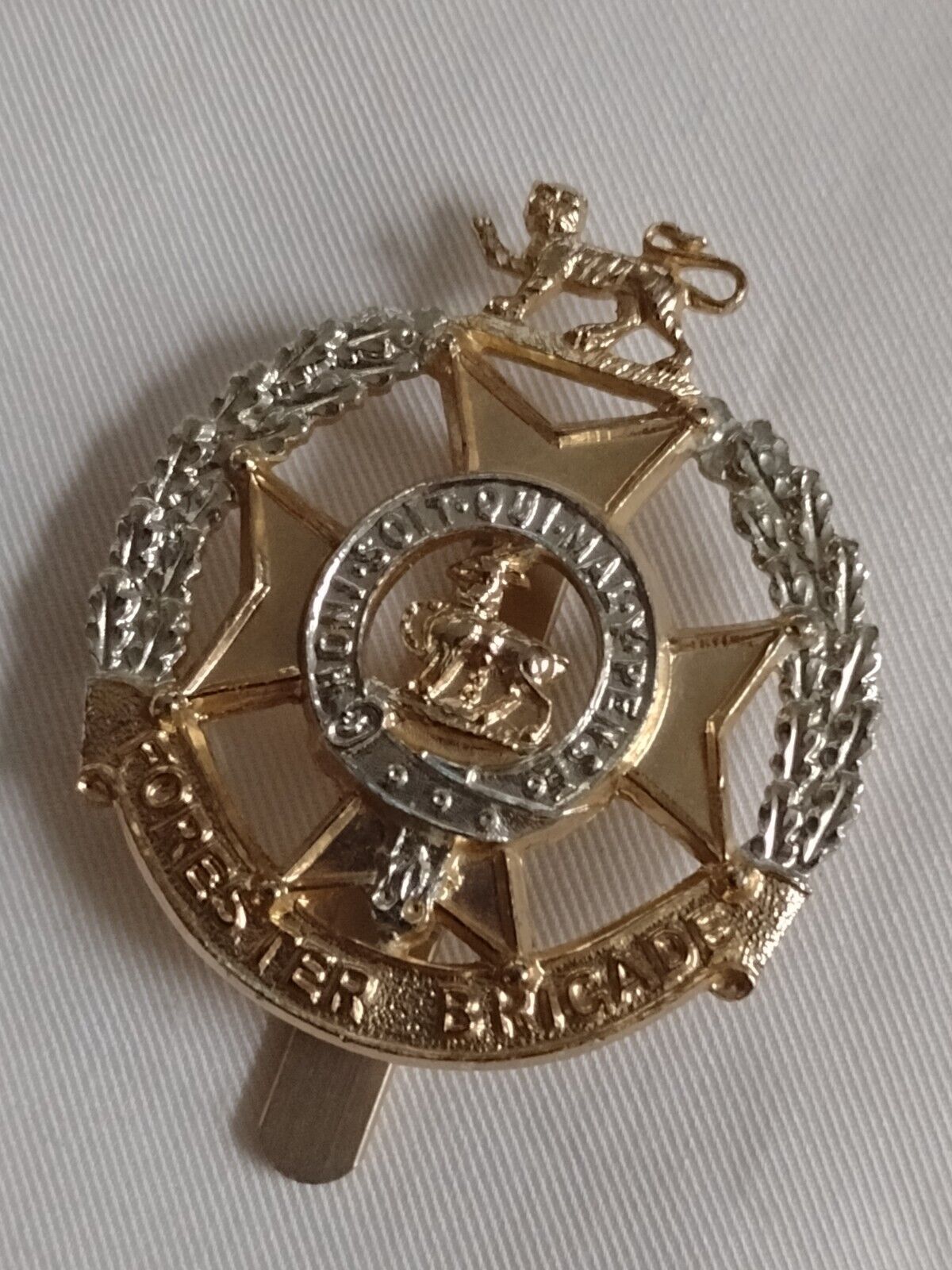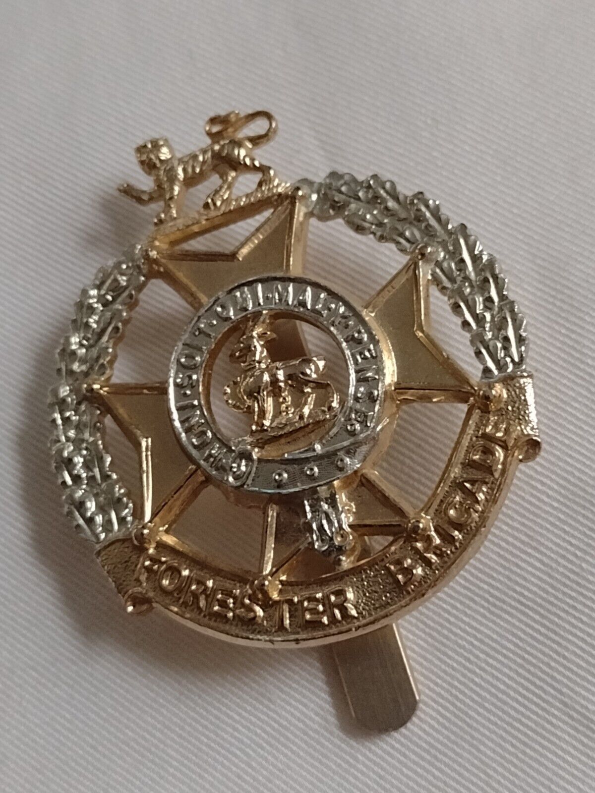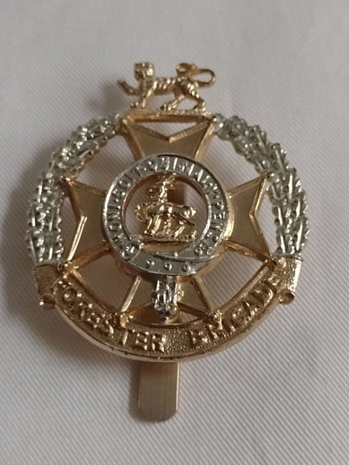 Staybrite Forester Brigade Cap Badge Slider maker JR Gaunt Anodised Aluminium