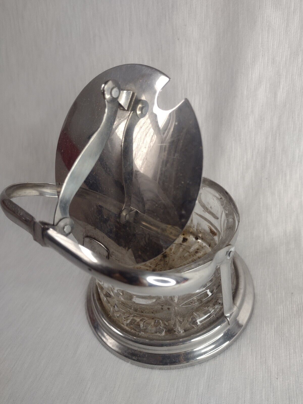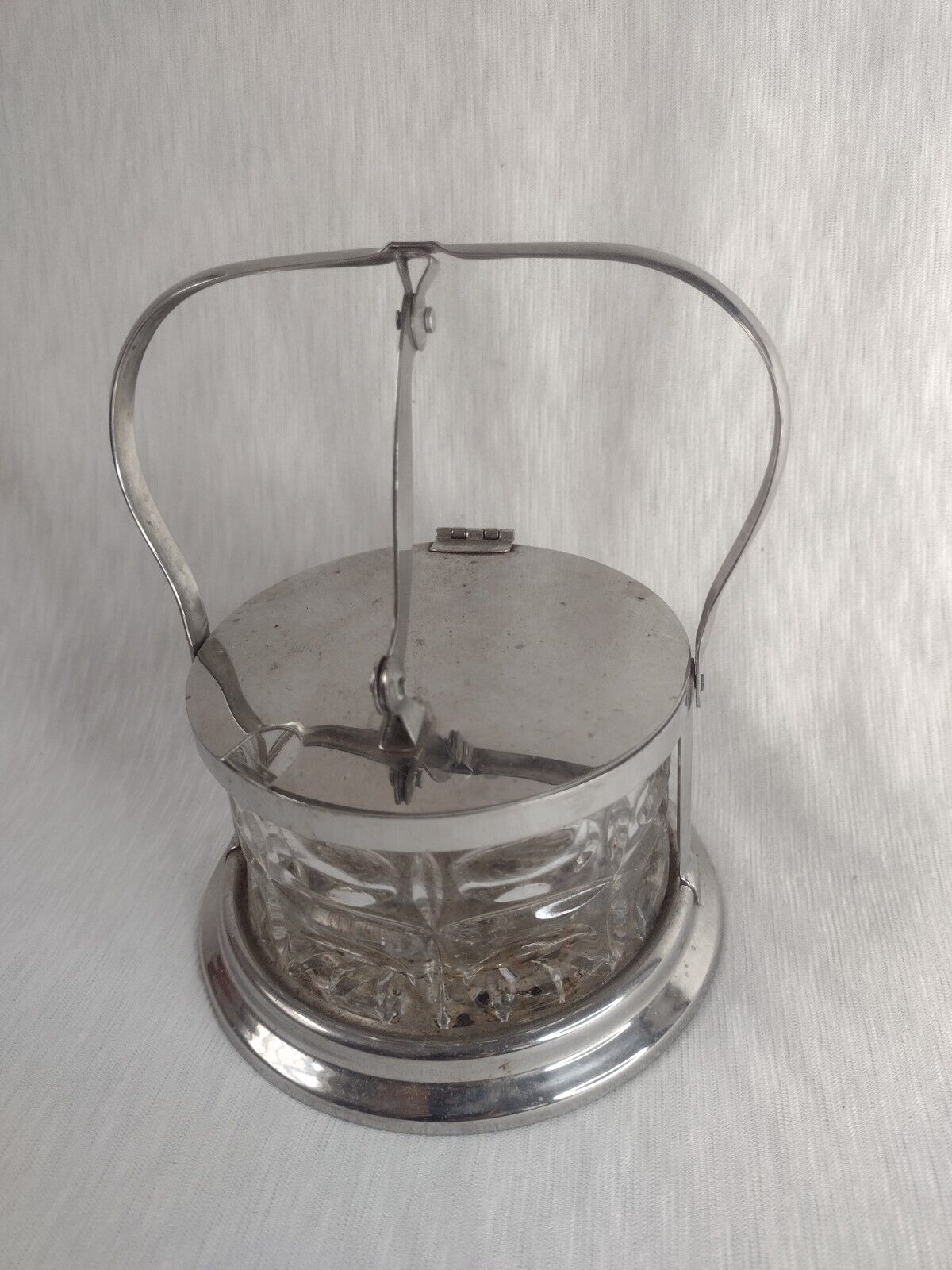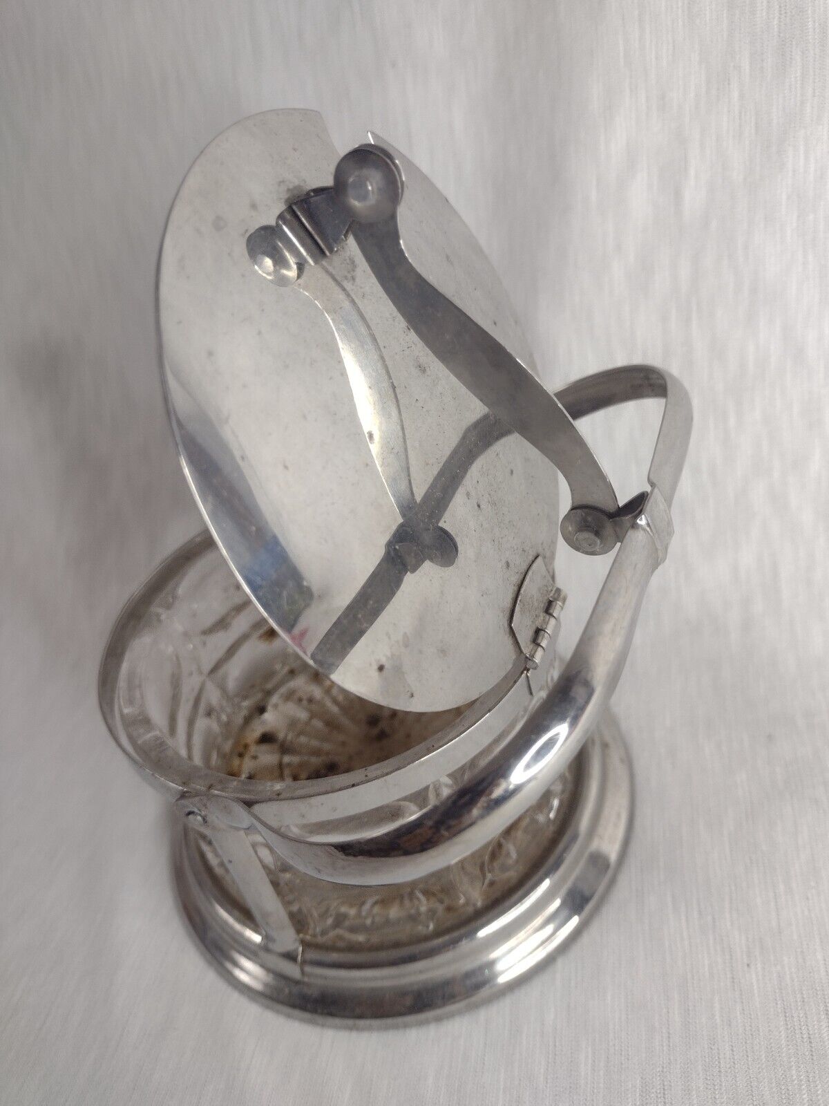 Sugar Bowl With Swing Lid Stainless Silver & Crystal Glass 14.5cm Vintage