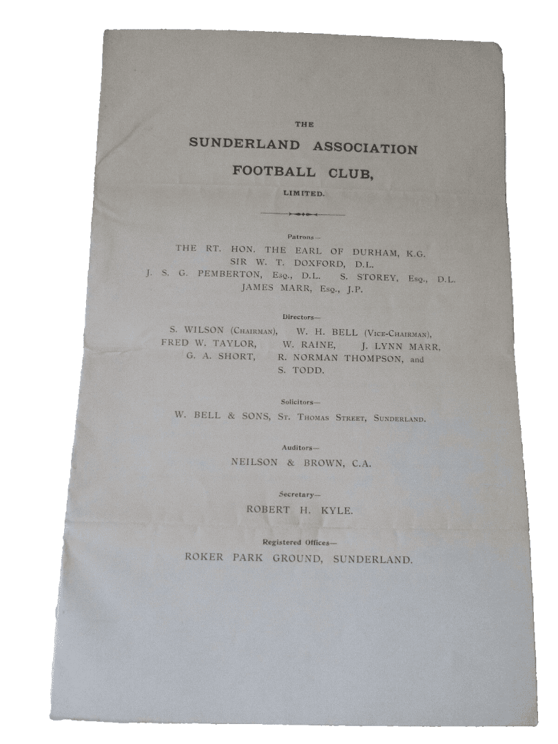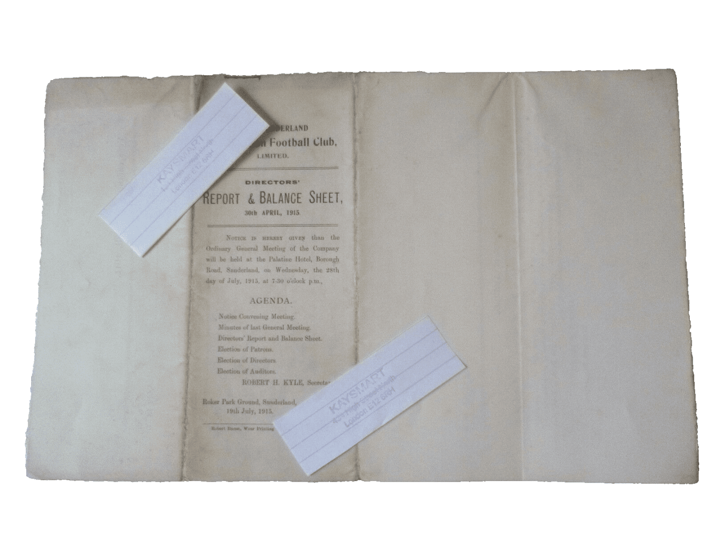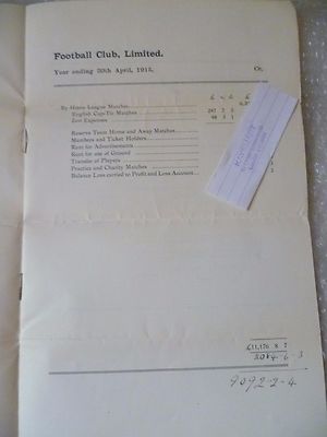 Sunderland FC Ltd Annual Accounts & Directors Reports Y/E 1915,30th Apr- Rare