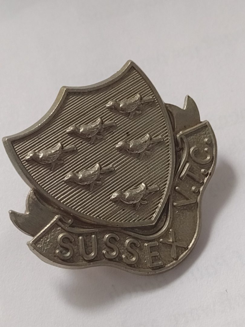 Sussex Volunteer Training Corps Cap Badge White Metal 2 Lugs 35mm Vintage Org