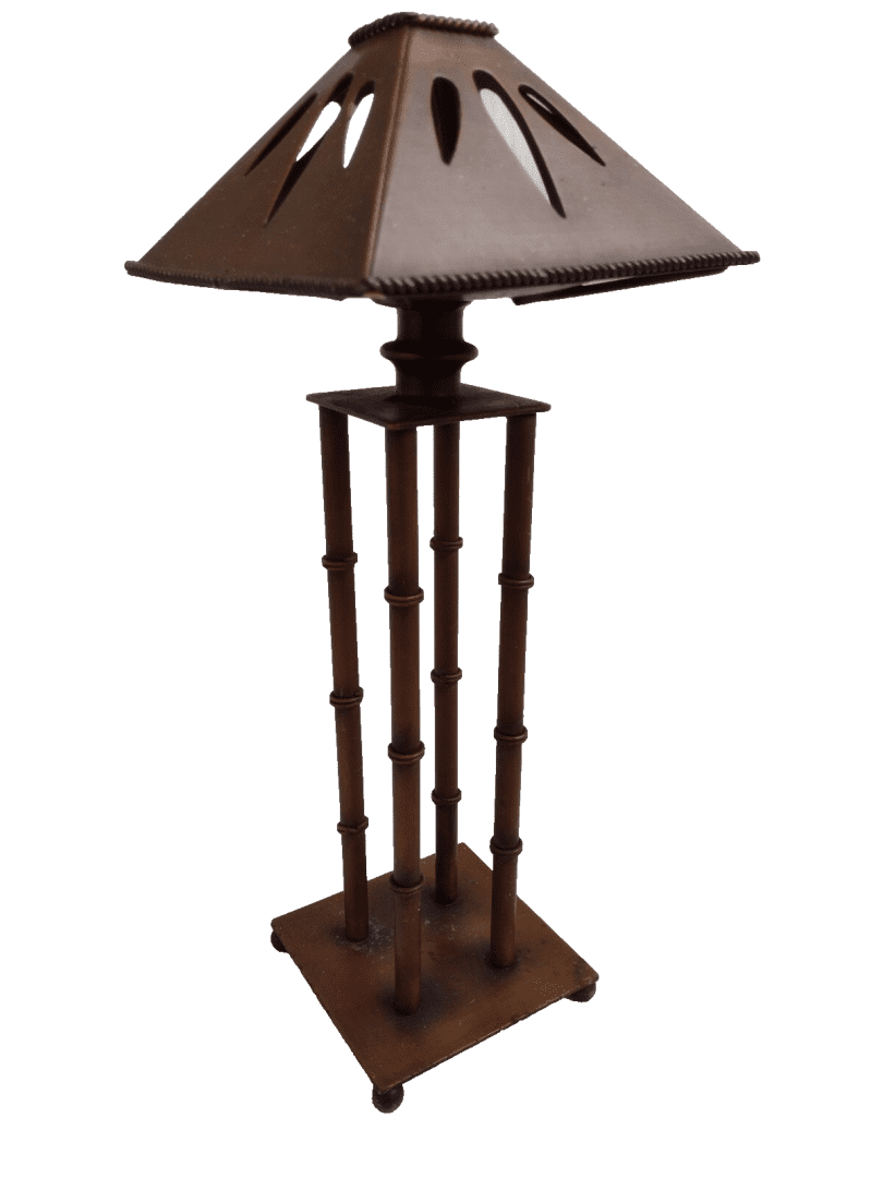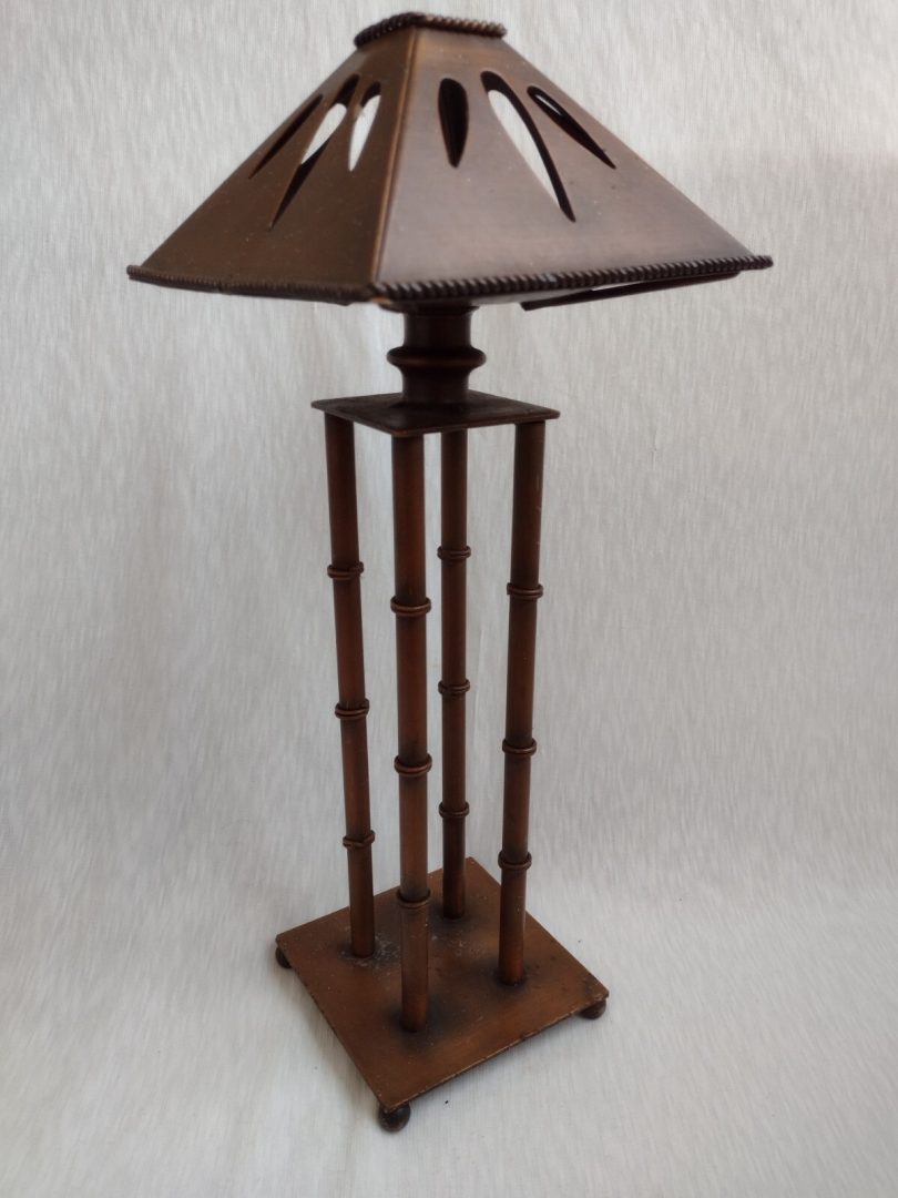 Tea Candle Holder on 4 Pillar Solid Copper Art & Craft Bamboo Design 34.5cm Rare