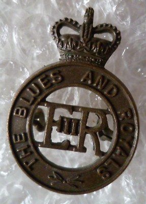 The Blues and Royals Cap Badge QC 2 EIIR Lugs Bronze maker FIRMIN ANTIQUE