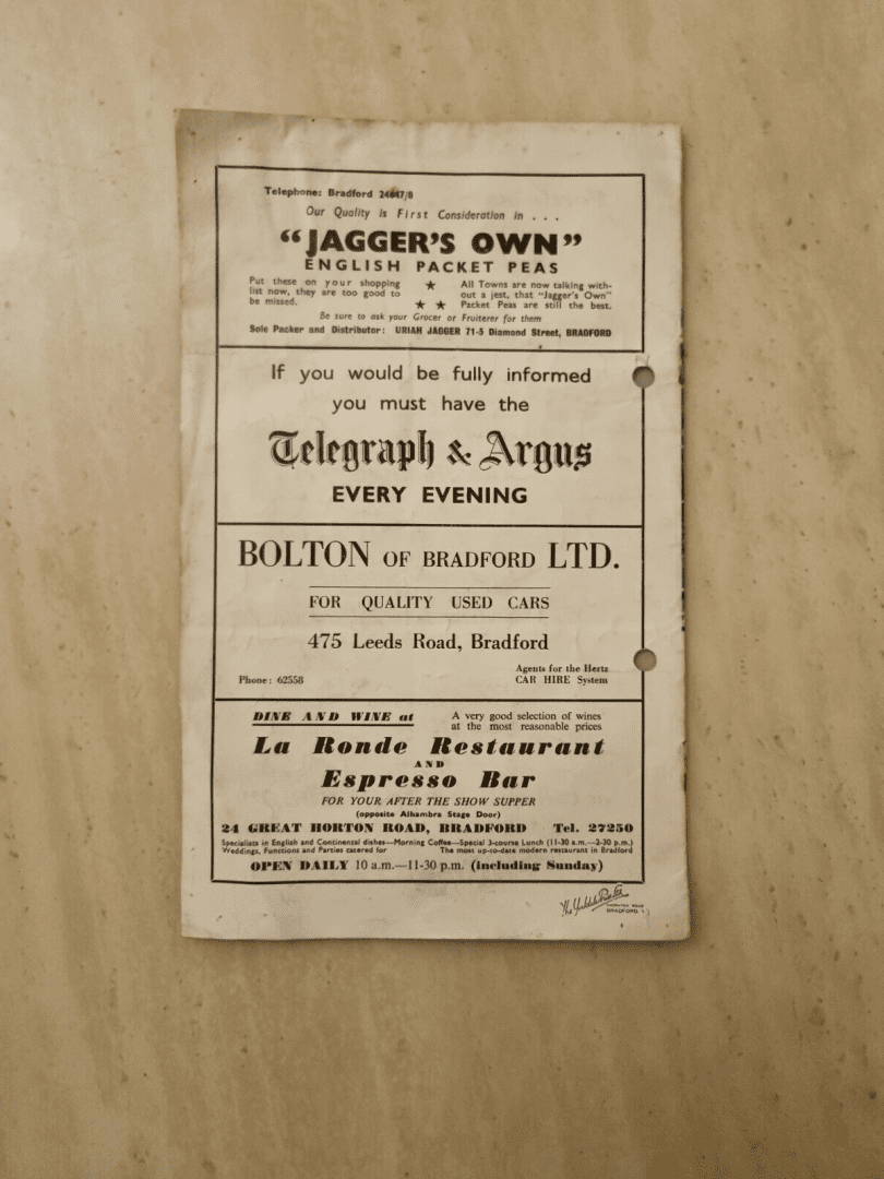 Seller note: This lovely Original programme has punch hole and light creasing, otherwise remains in good condition for its age. Please see the picture as it forms part of the description.