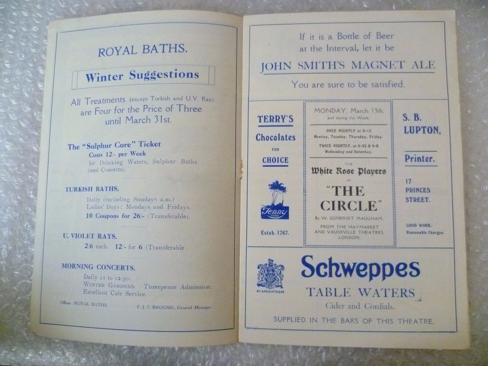 Seller note: Grand Opera House Theatre Programme THE CIRCLE- White Rose Players. This lovely Original programme has minor rusty staple otherwise is in very good condition for its age. Please see the picture as it forms part of the description.