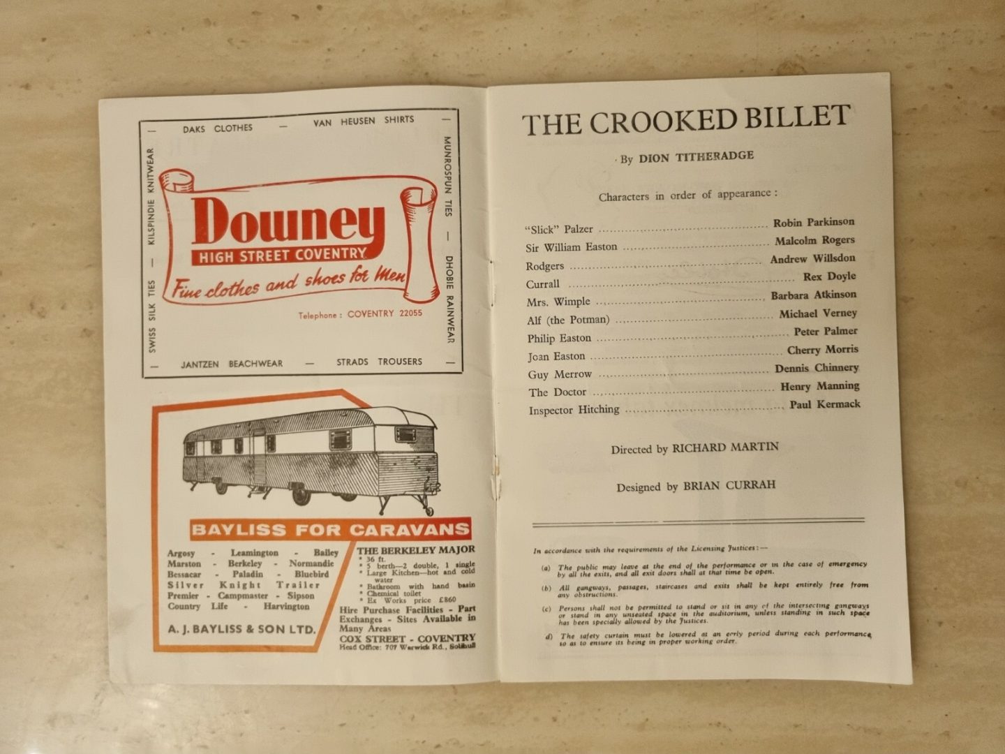 THE CROOKED BILLET – ROBIN PARKINSON MALCOLM ROGERS BARBARA ATKINSON REX DOYLE