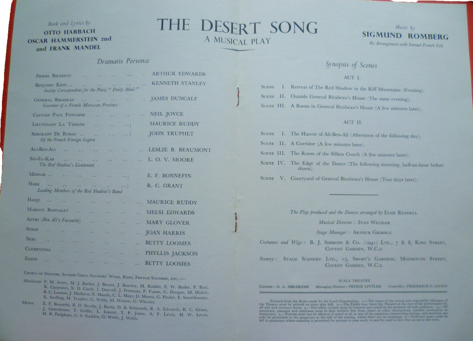 You are purchasing old an original 1948 Barclays Bank Operatic Society: THE DESERT SONG by Otto Harbach Oscar Hammerstein 2nd &F Man