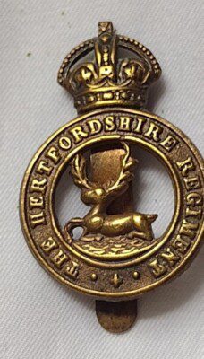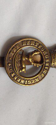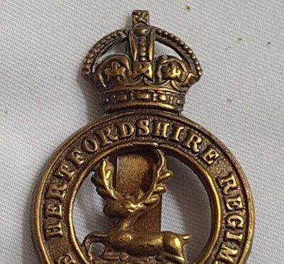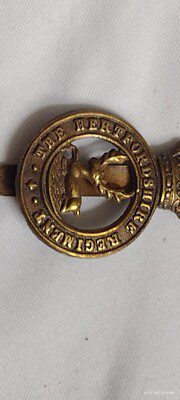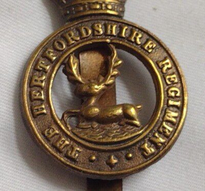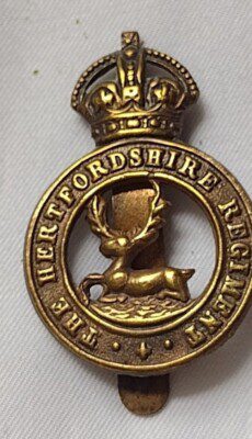 The Hertfordshire Regiment Cap Badge KC Slider Brass 41 mm ANTIQUE Original