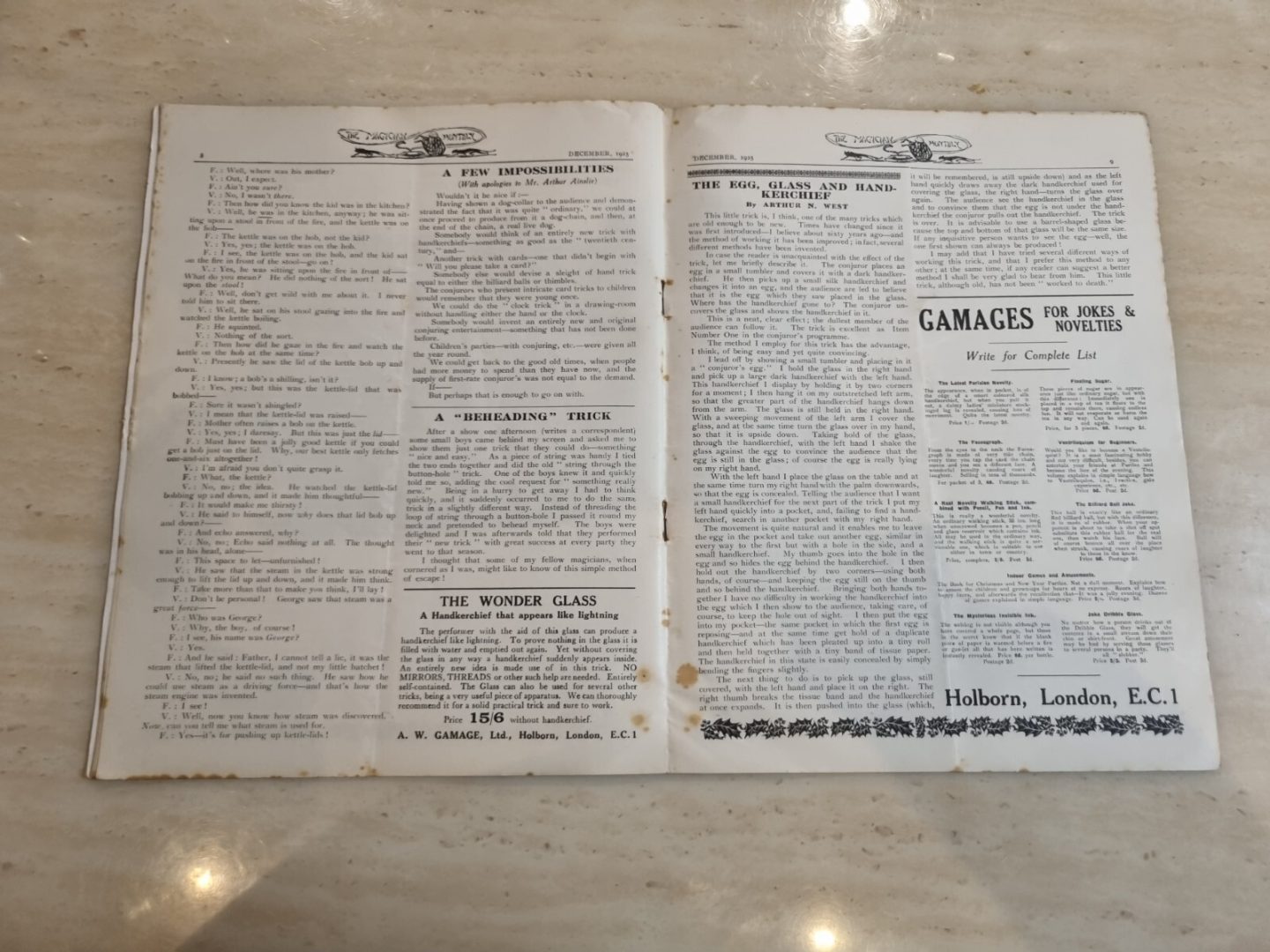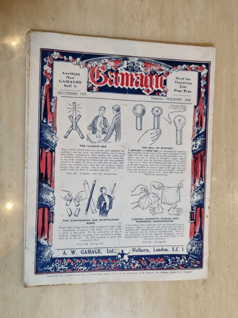 The Magician Monthly Magazine from December1925 is a rare and valuable piece for any magic enthusiast or collector. With its stunning cover art and fascinating content, this antique magazine provides a unique glimpse into the world of magic during the early 20th century. Please note you are purchasing the magazine ONLY any supplement or promotional items which was part of the original issue is not included