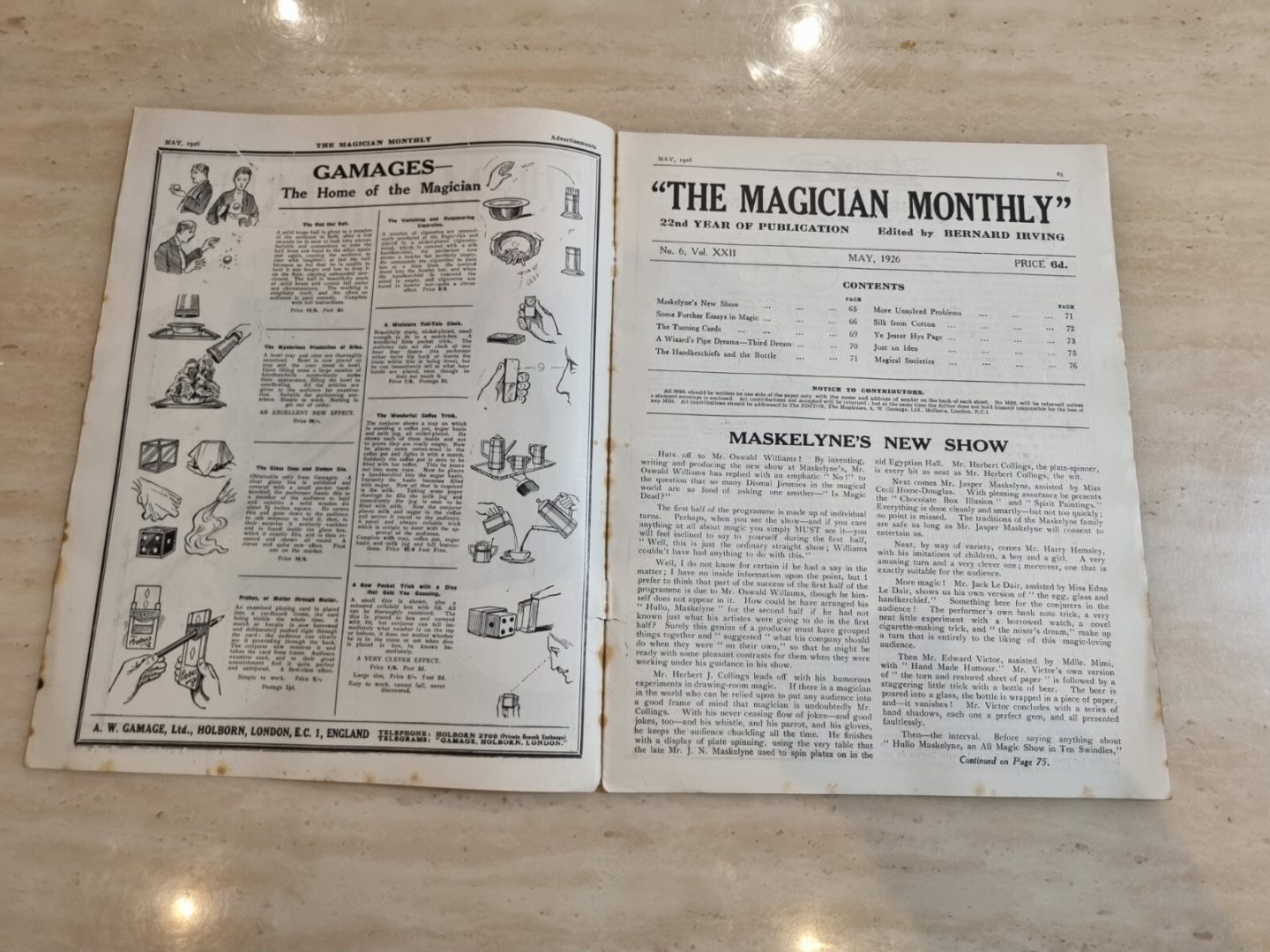 Seller note: The Magician monthly magazine May 1926 No.6 Vol. XXII Inside - Articles, features, Illustrations. For contents please see the pictures . This Magazine is a rare and valuable piece for any magic enthusiast or collector. With its stunning cover art and fascinating content, this antique magazine provides a unique glimpse into the world of magic during the early 20th century. Please note you are purchasing the magazine ONLY any supplement or promotional items which was part of the original issue is not included