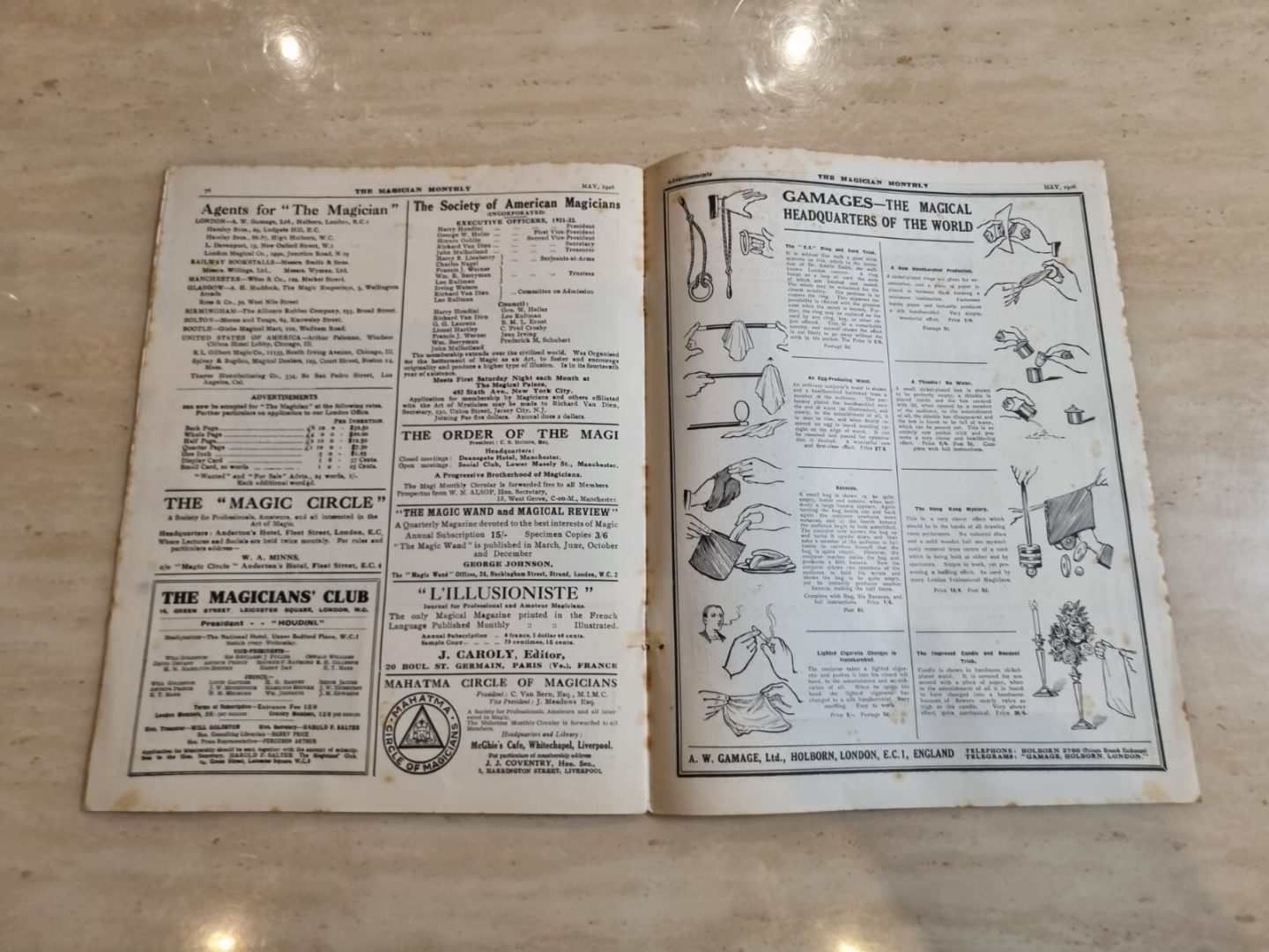The Magician Monthly Magazine from May 1926 is a rare and valuable piece for any magic enthusiast or collector. With its stunning cover art and fascinating content, this antique magazine provides a unique glimpse into the world of magic during the early 20th century. Please note you are purchasing the magazine ONLY any supplement or promotional items which was part of the original issue is not included