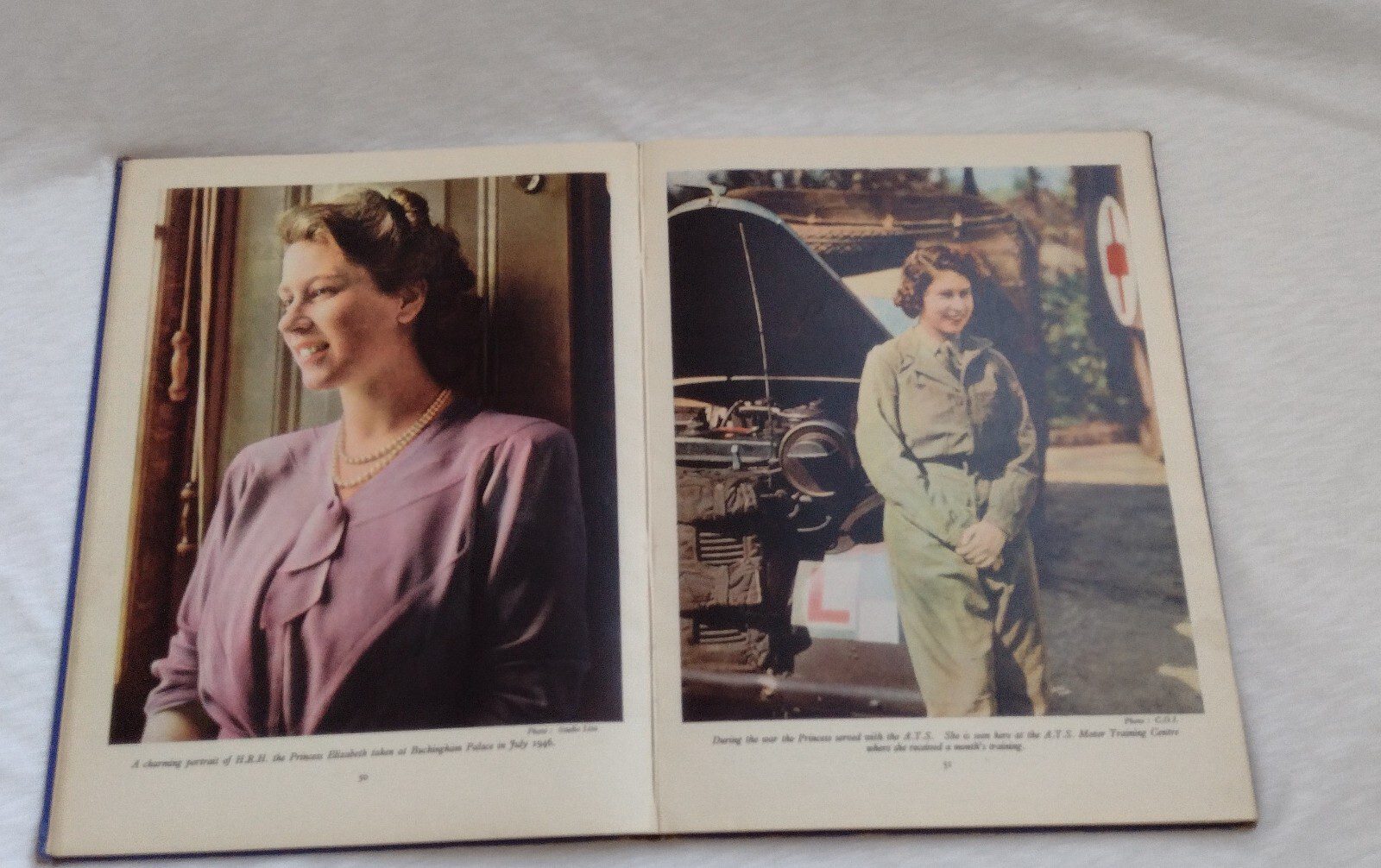 Inside – Articles and features – contains full pages of exclusive pictures of the Queen with The Duke of Edinburgh and her family. Also some pictures of her Tour abroad and a picture of her at the age of three.